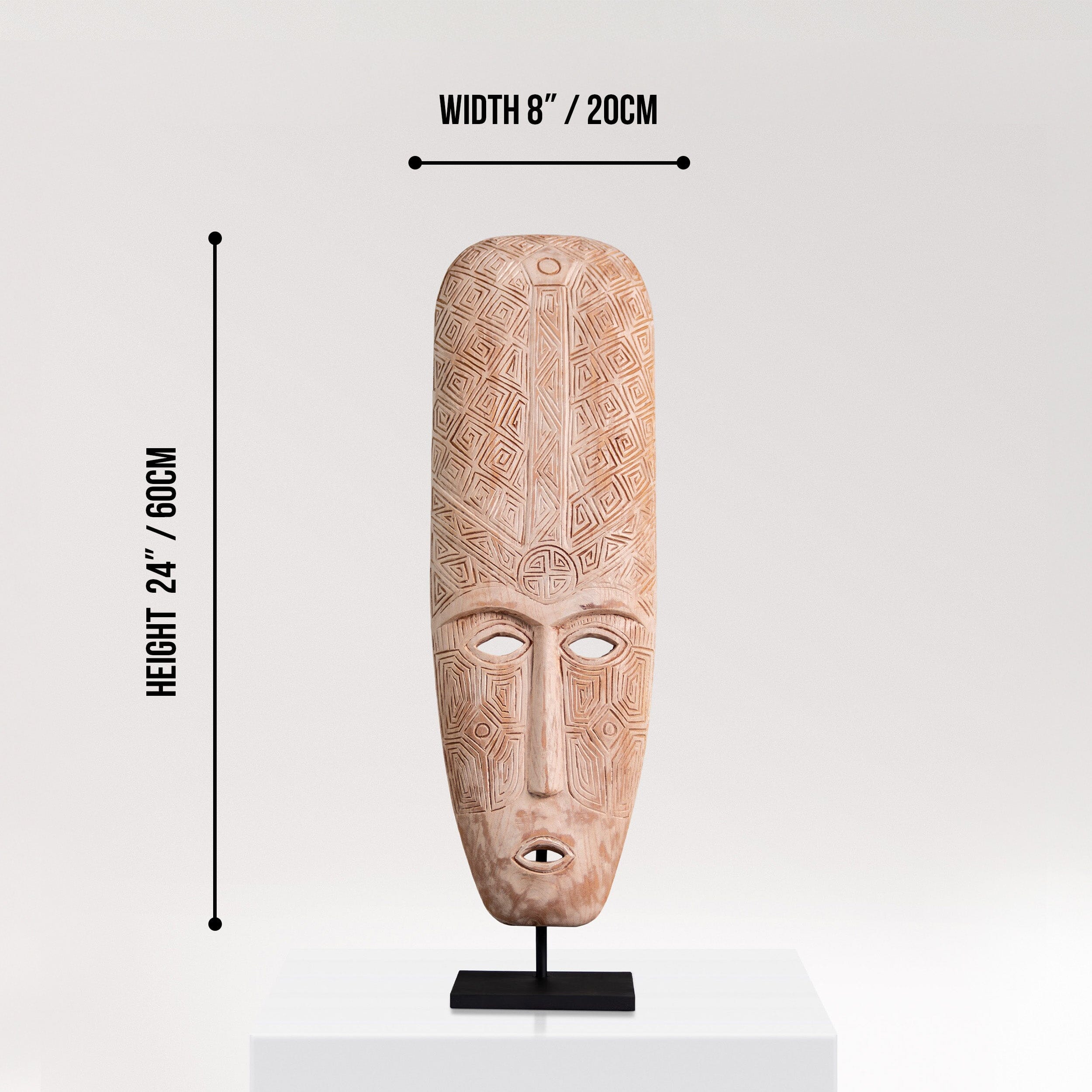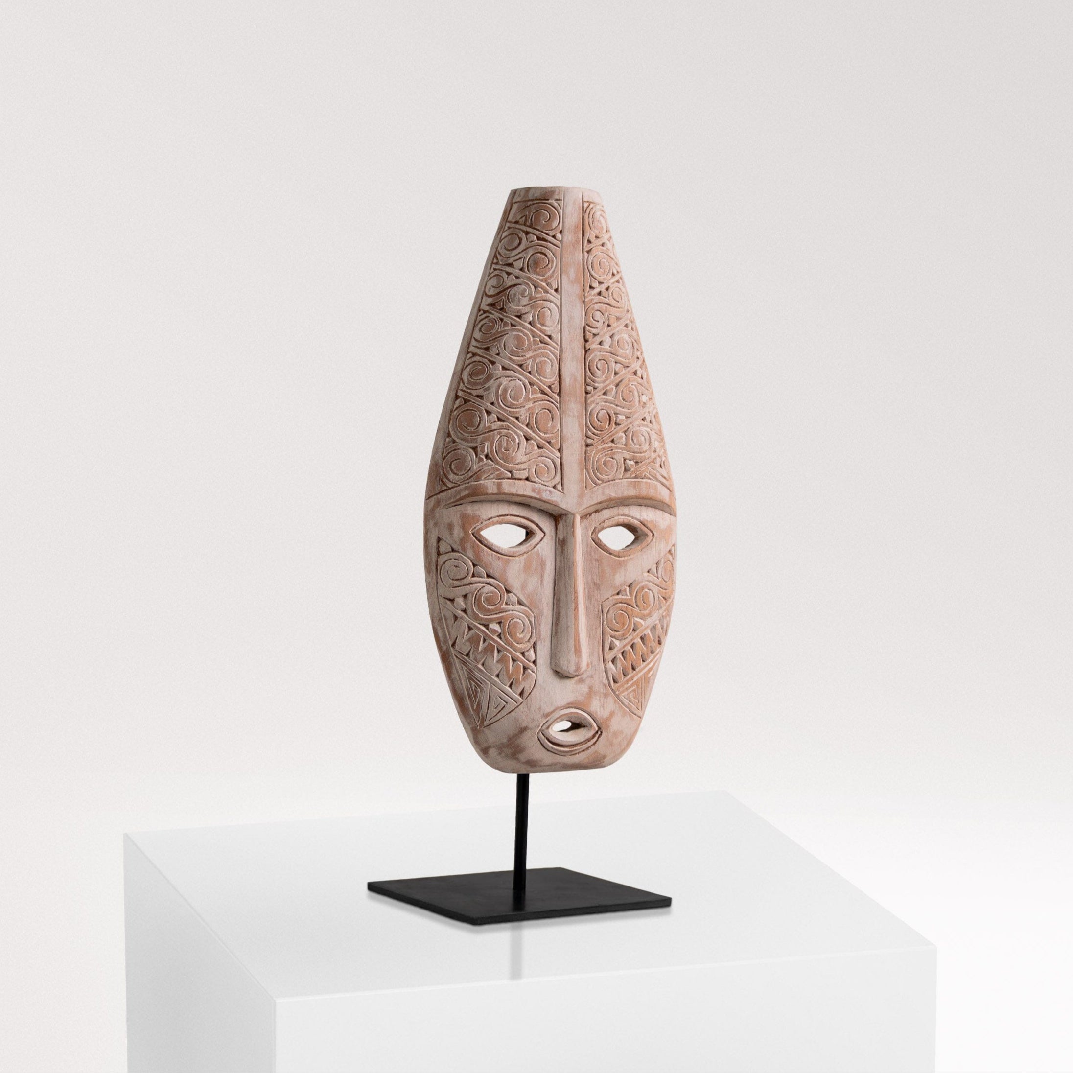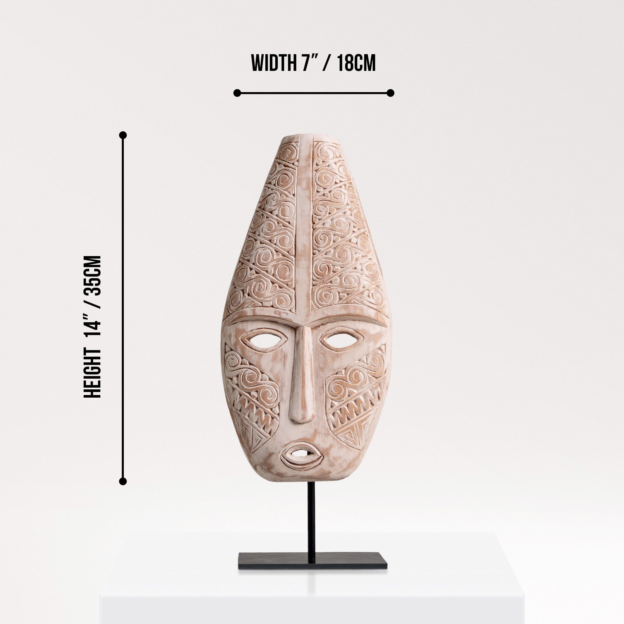 Handcrafted by artisans using traditional tools, Ancestor Masks evoke ritual and memory through intricate patterns and stone-like wood. Displayed on black stands, this sculptural trio adds depth, heritage, and cultural presence to any interior space.