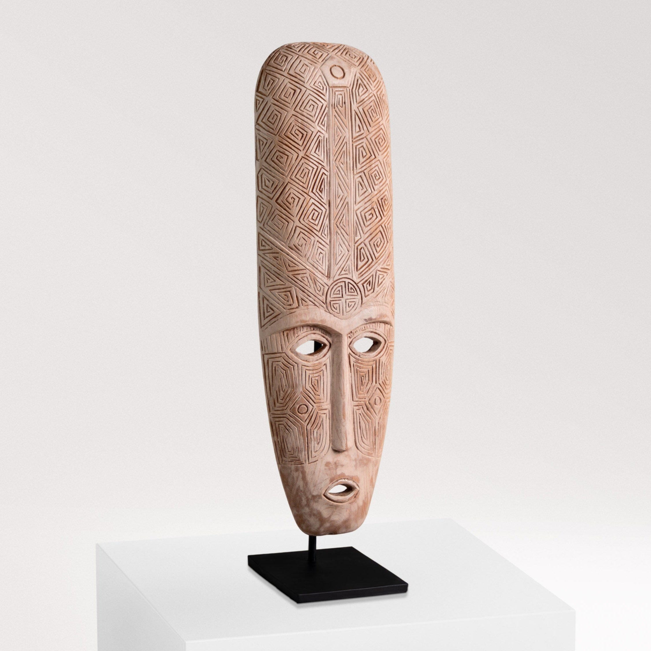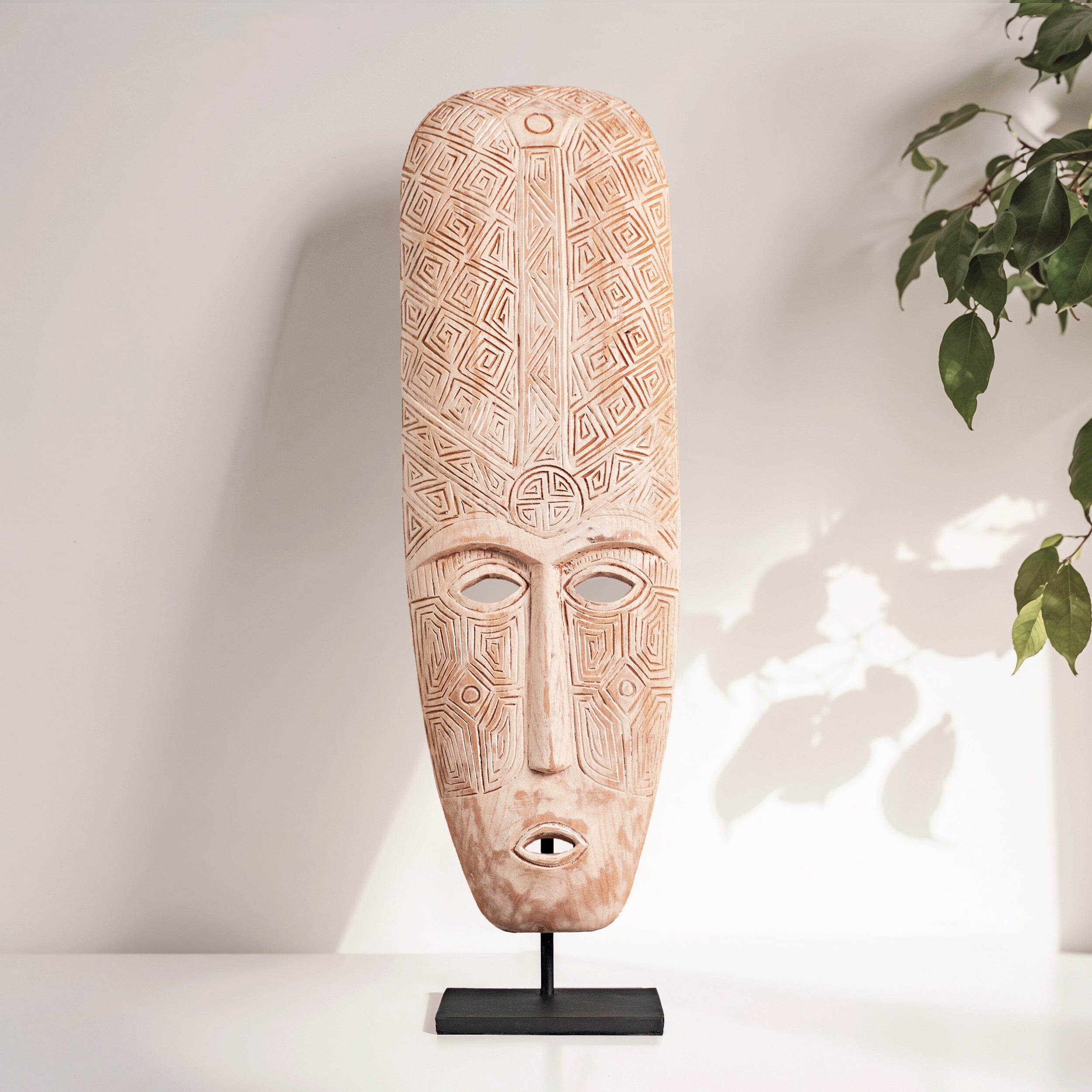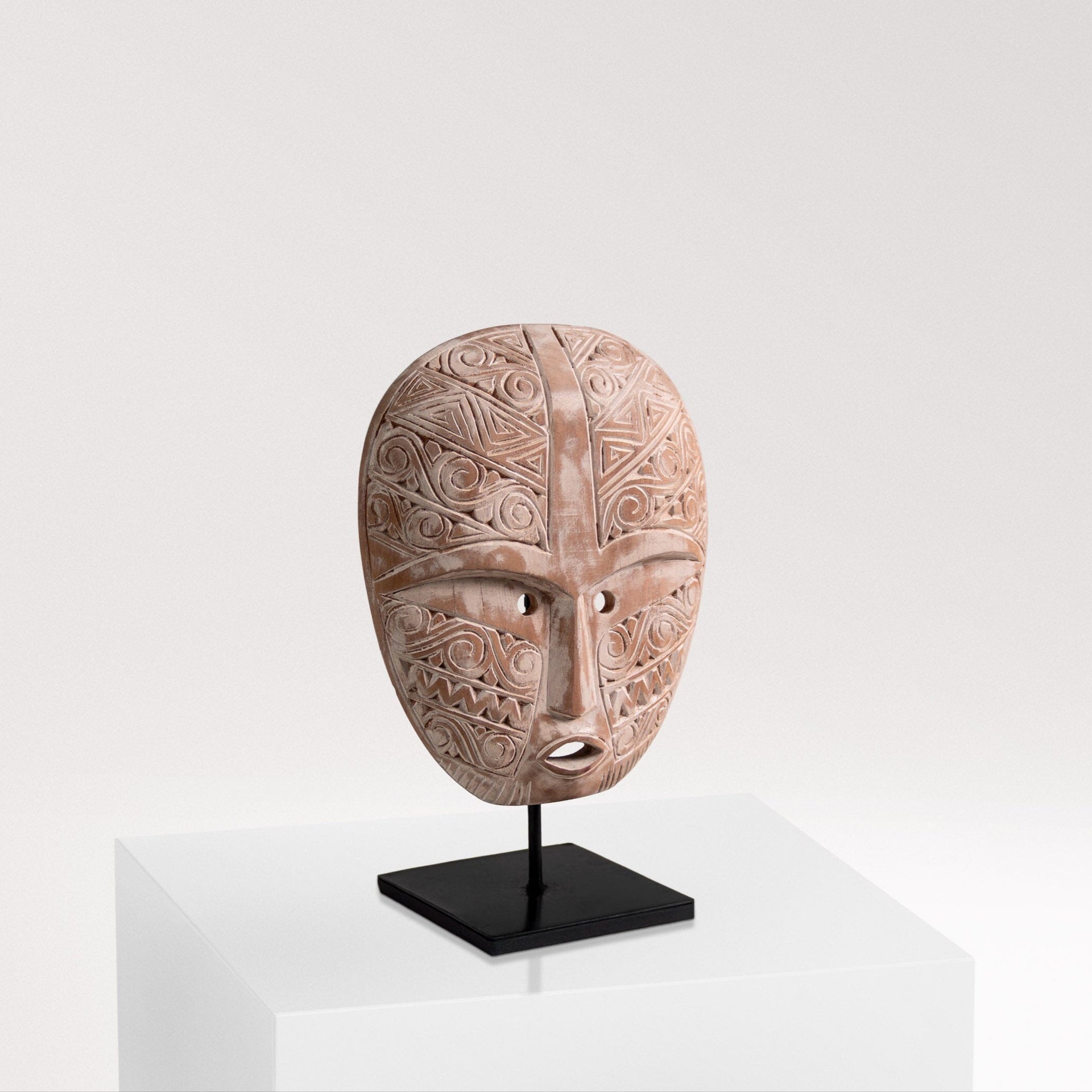 Handcrafted by artisans using traditional tools, Ancestor Masks evoke ritual and memory through intricate patterns and stone-like wood. Displayed on black stands, this sculptural trio adds depth, heritage, and cultural presence to any interior space.