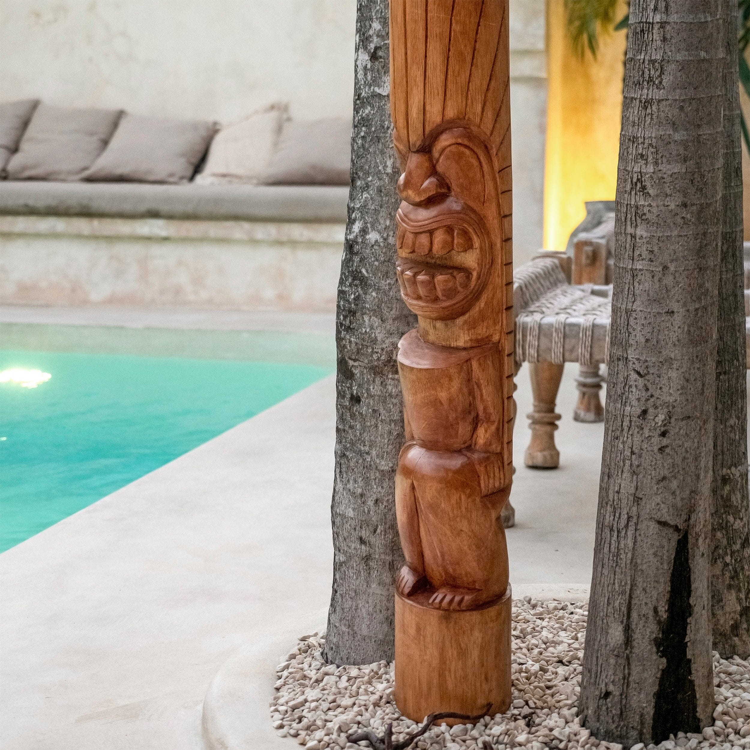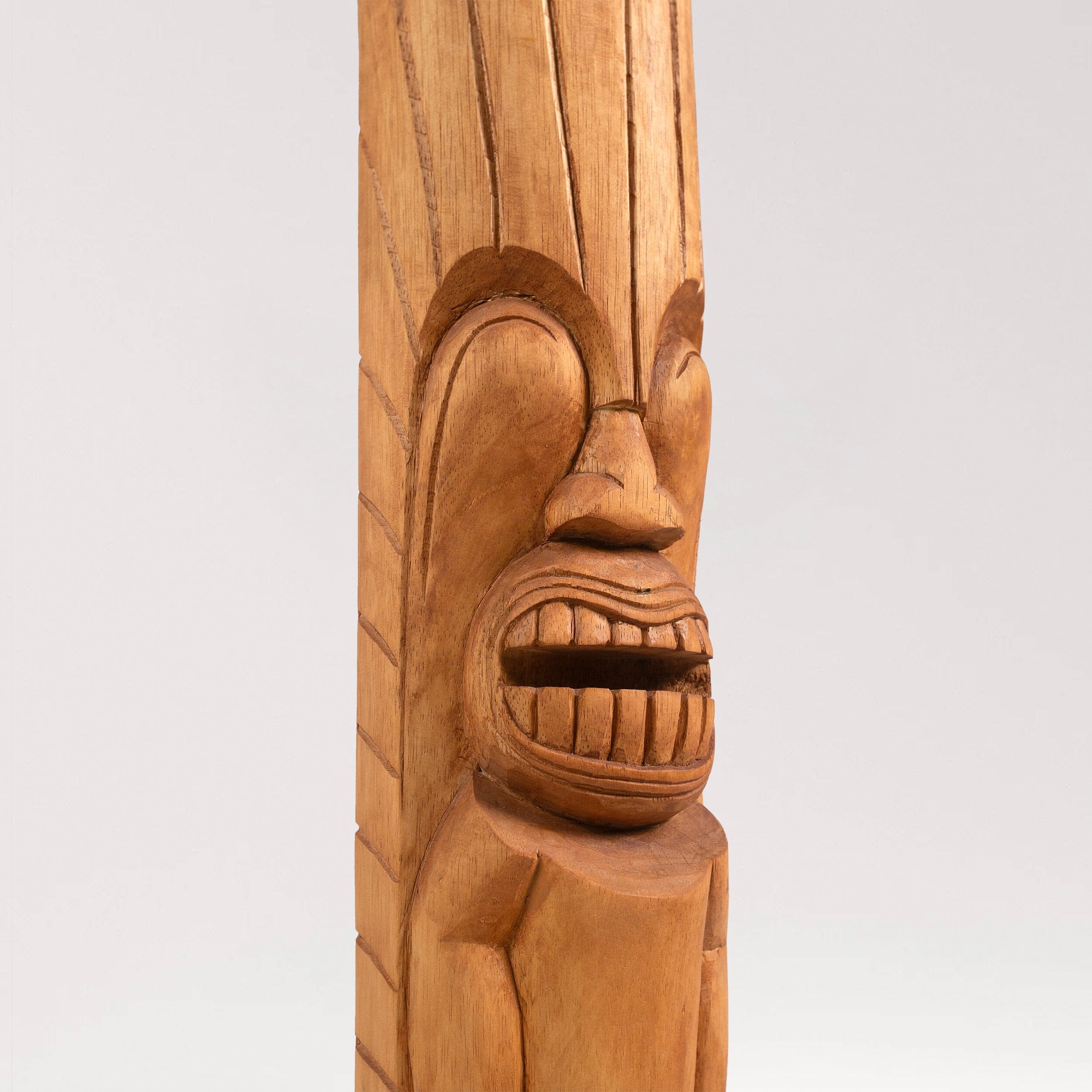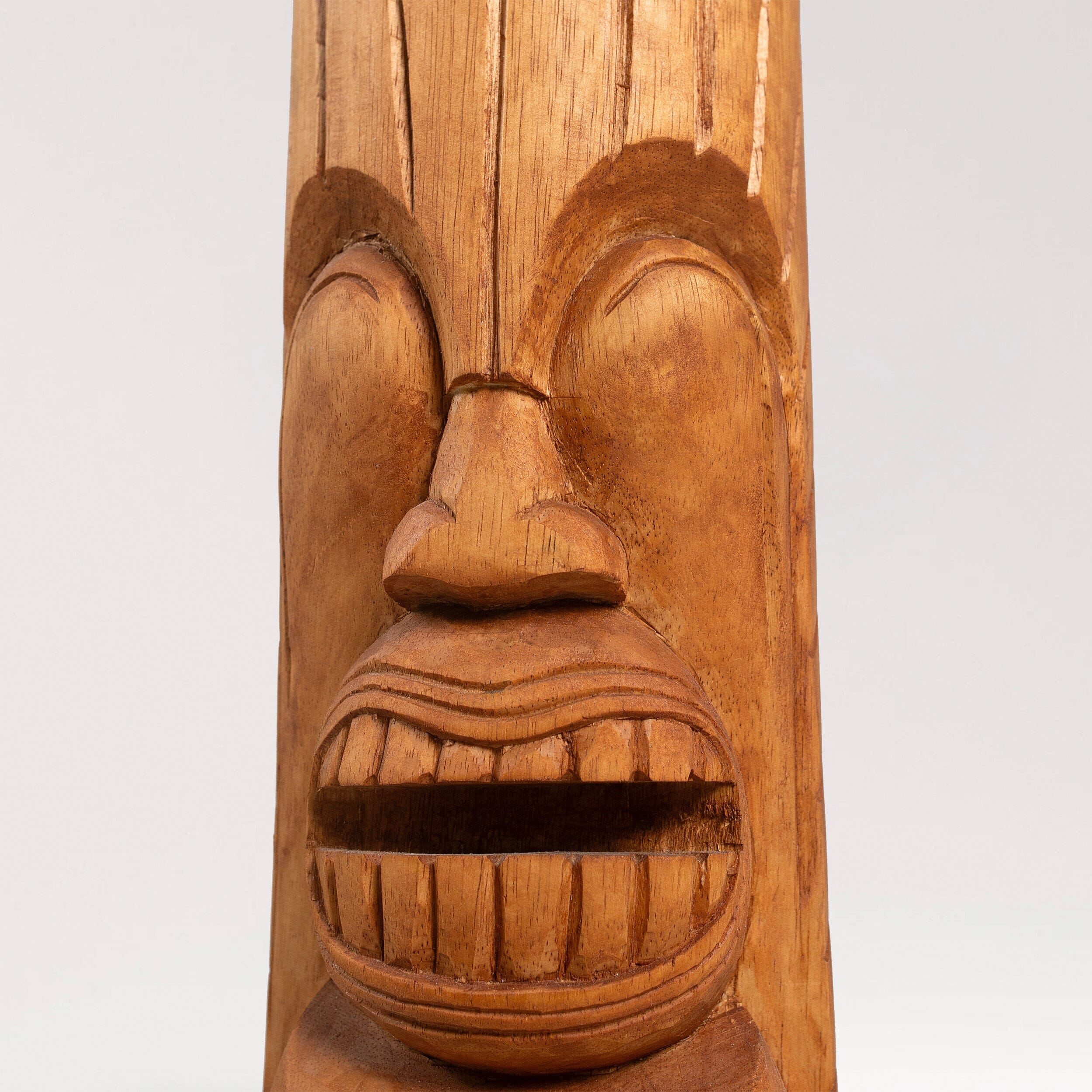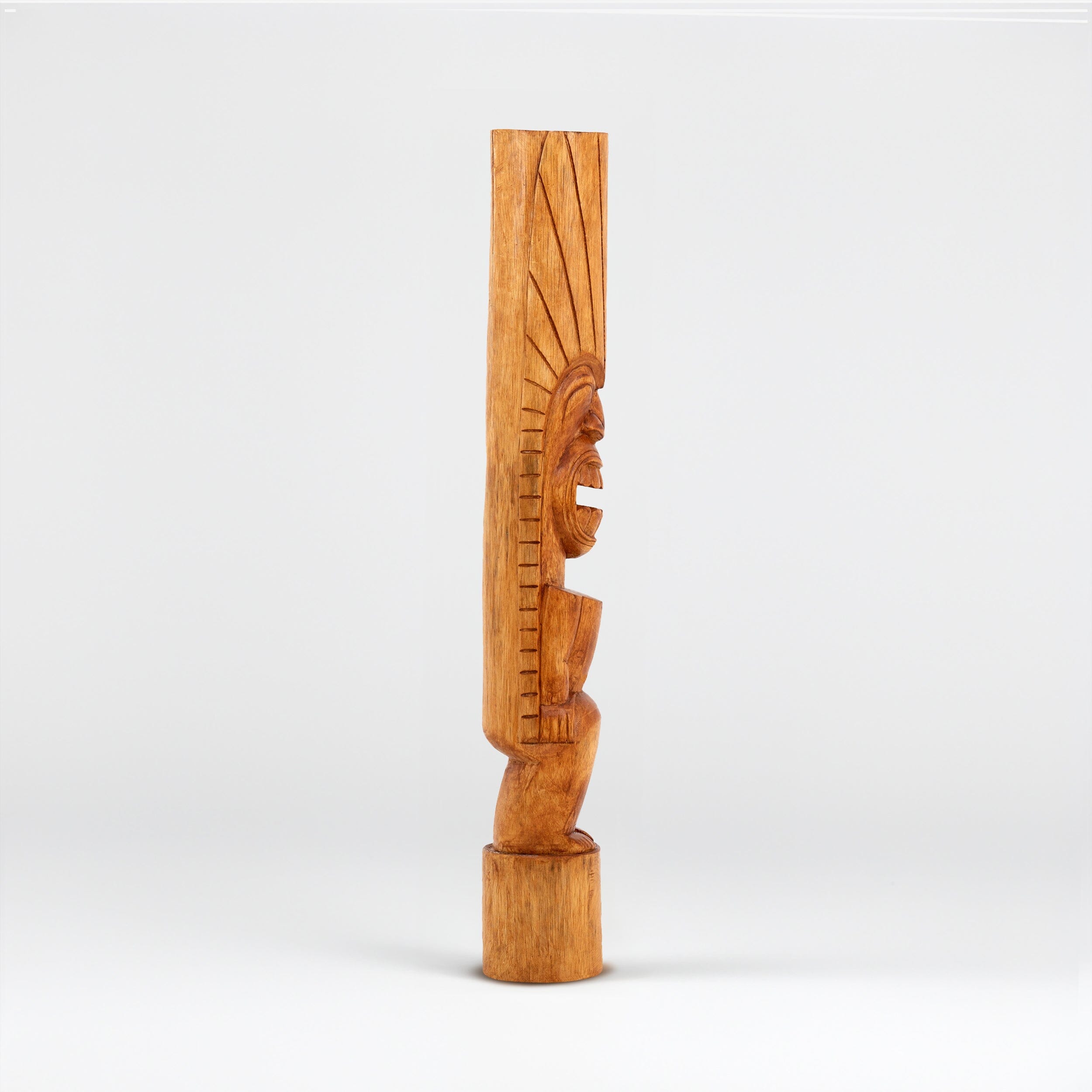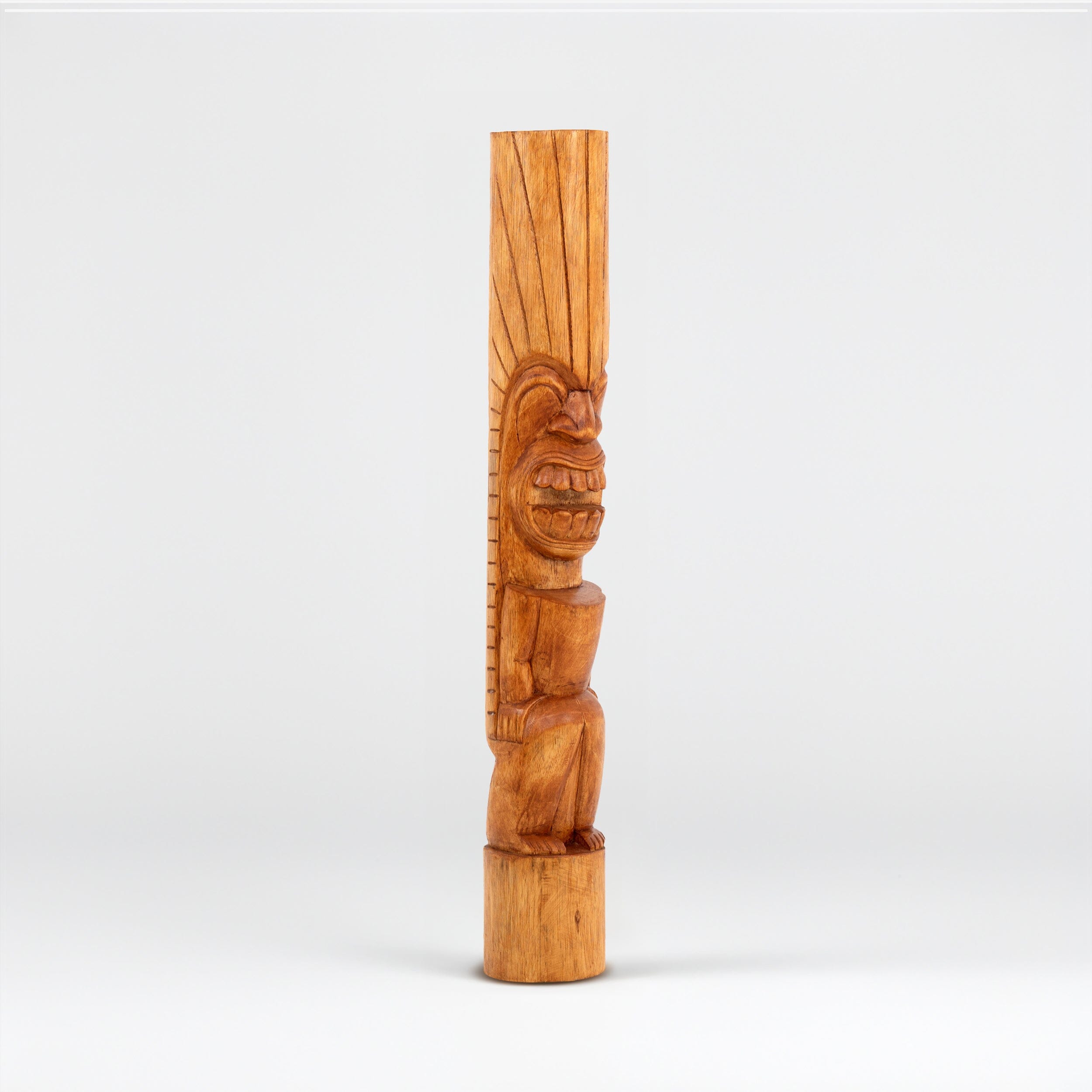 This hand-carved totem represents Lono, the Hawaiian god of peace and prosperity. The gentle features and warm expression embody harmony and abundance - perfect for creating a space of growth and fortune. Each detail is carved by hand in quality wood to bless your home with peaceful energy and lasting prosperity.