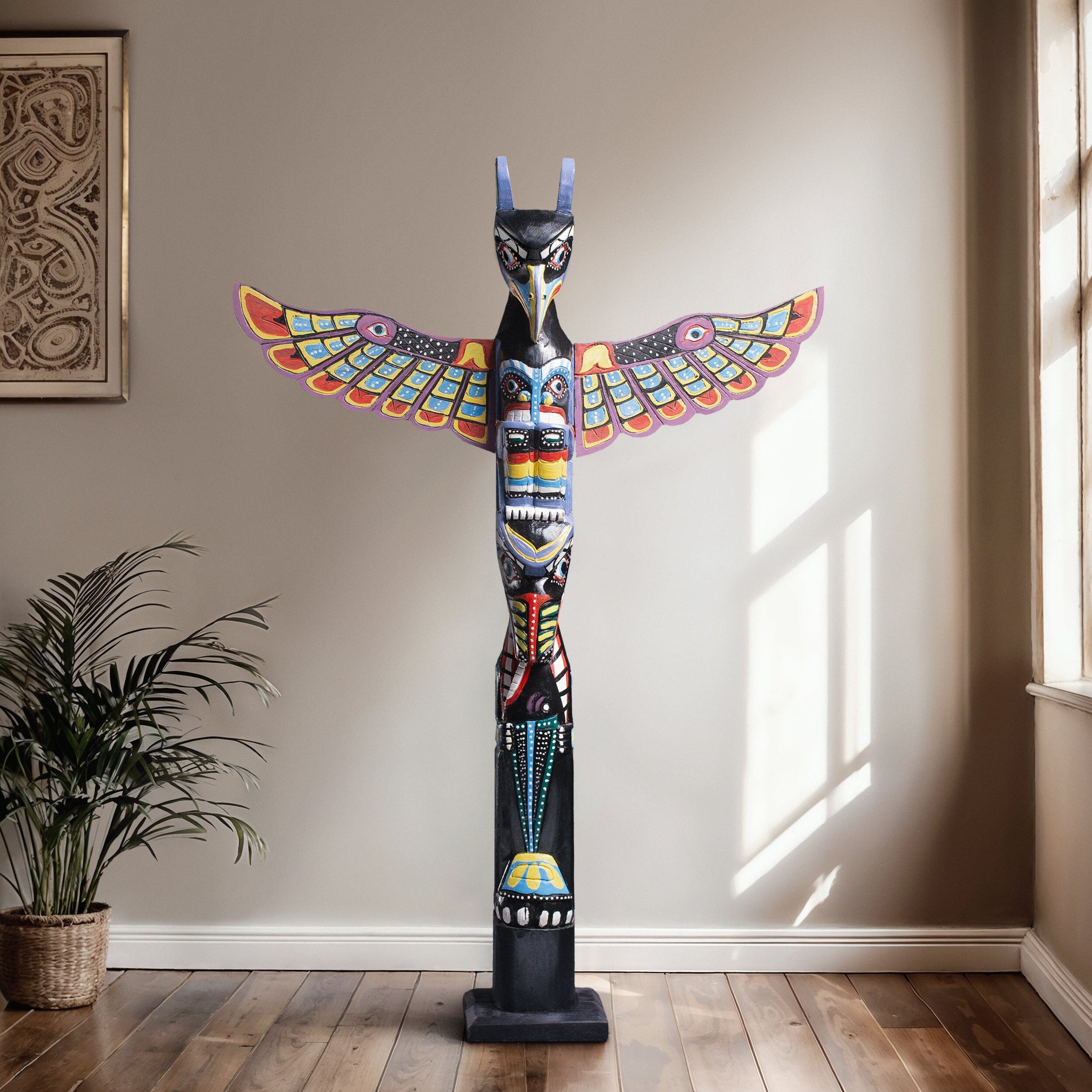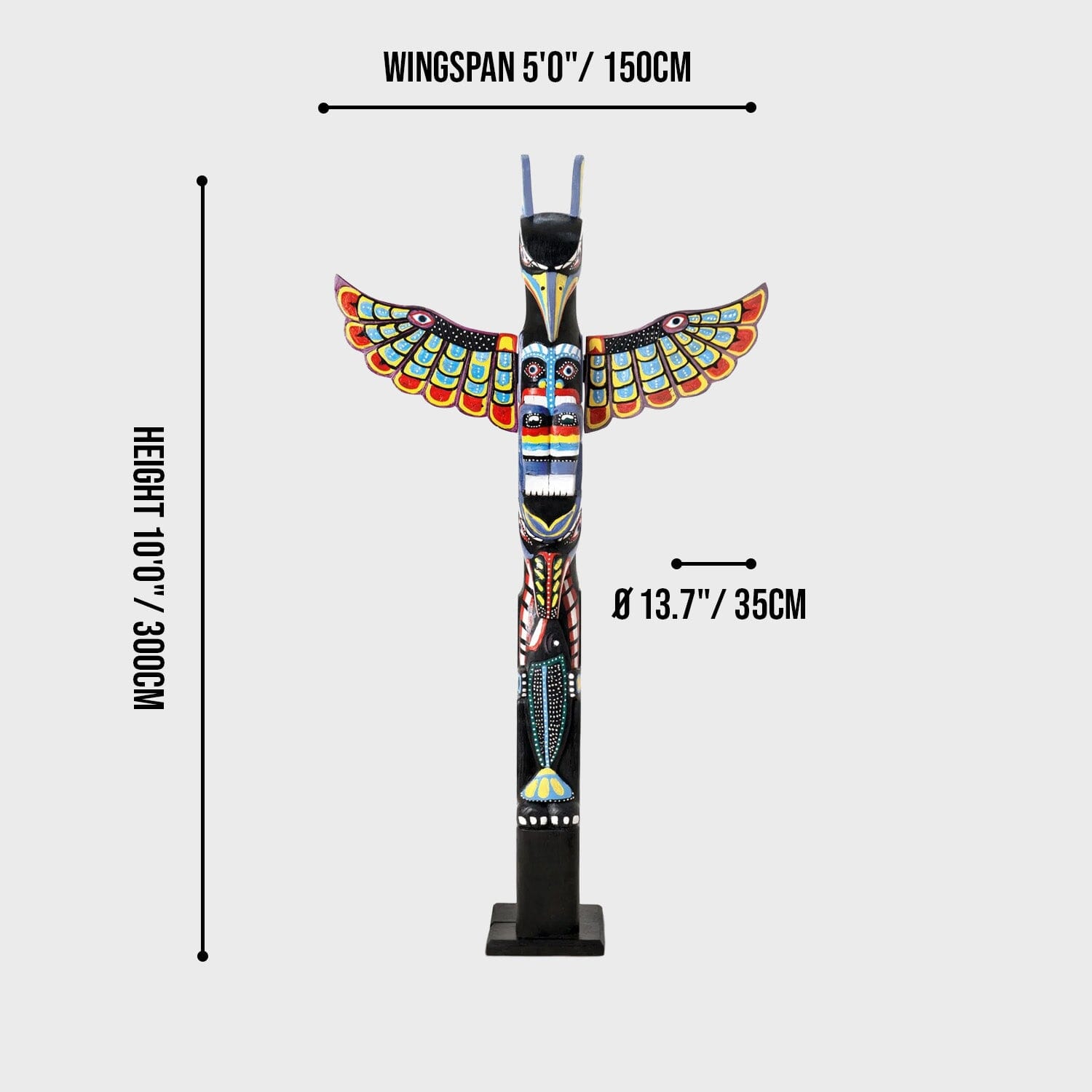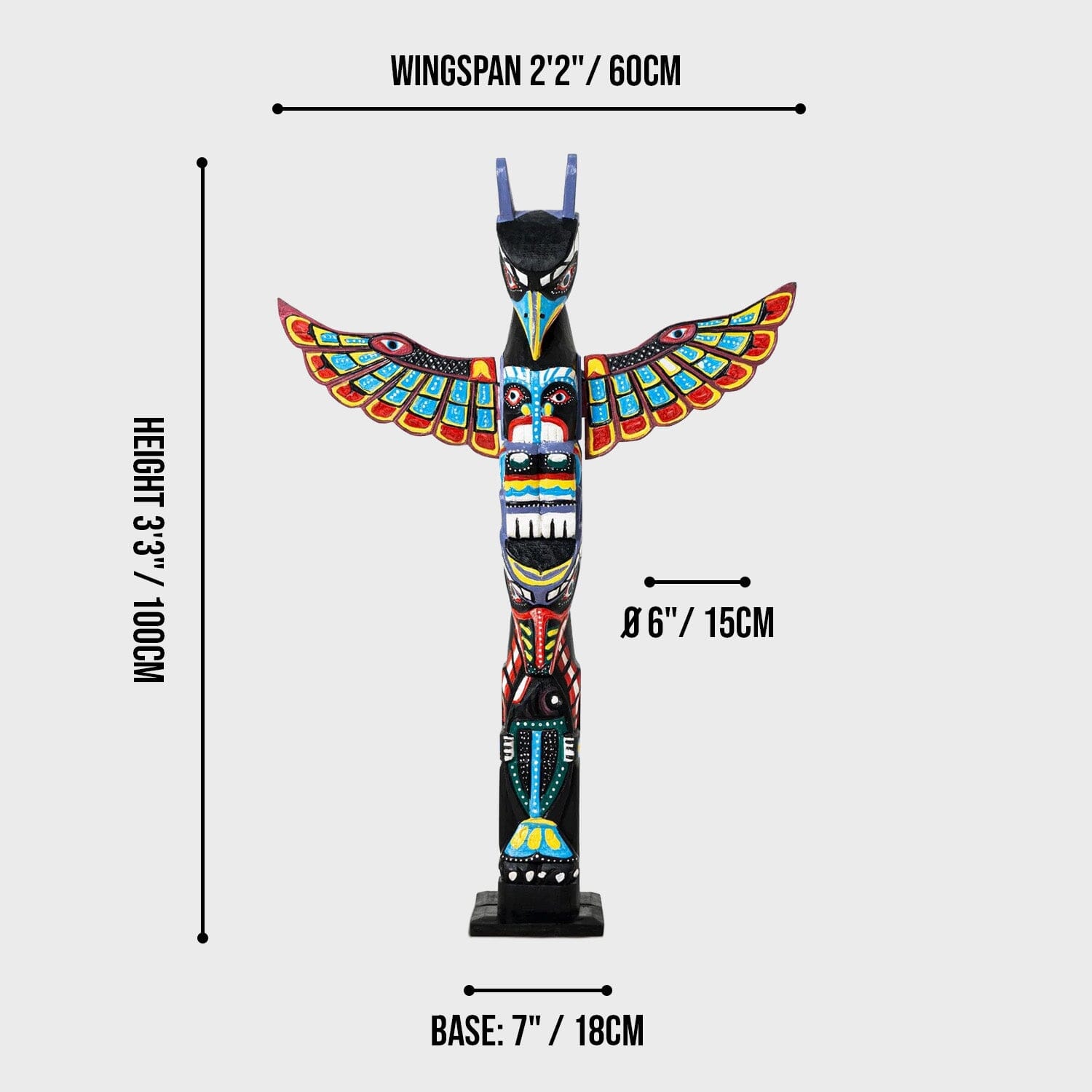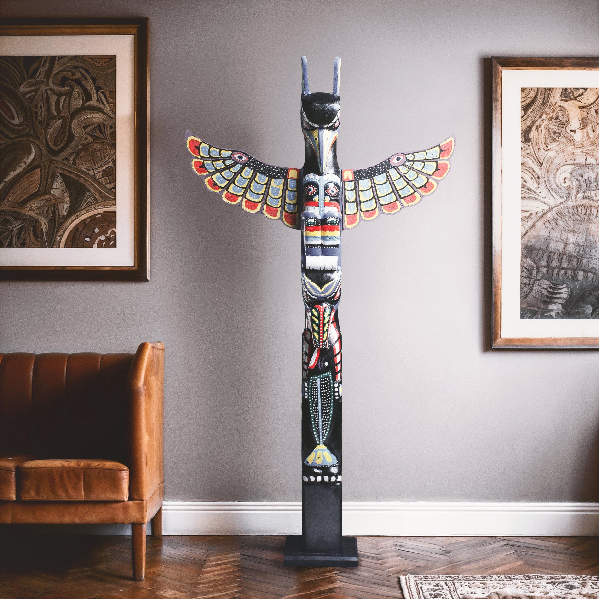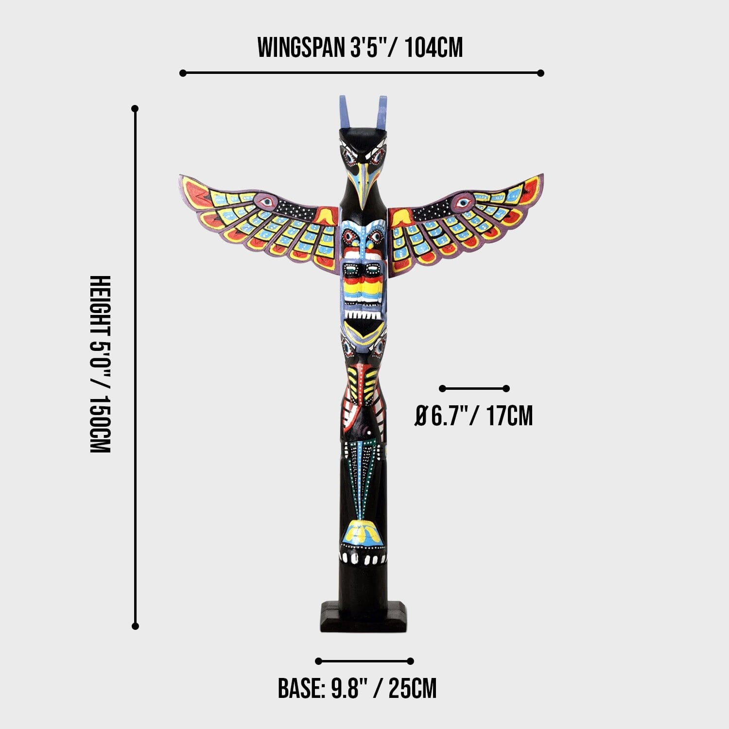 Our hand-carved Totem Pole, crafted with the utmost precision from high-quality wood, embodies rich storytelling. This unique piece features a majestic eagle for vision, an owl symbolizing wisdom, and a salmon representing life’s renewal, each detail meticulously carved by skilled artisans.