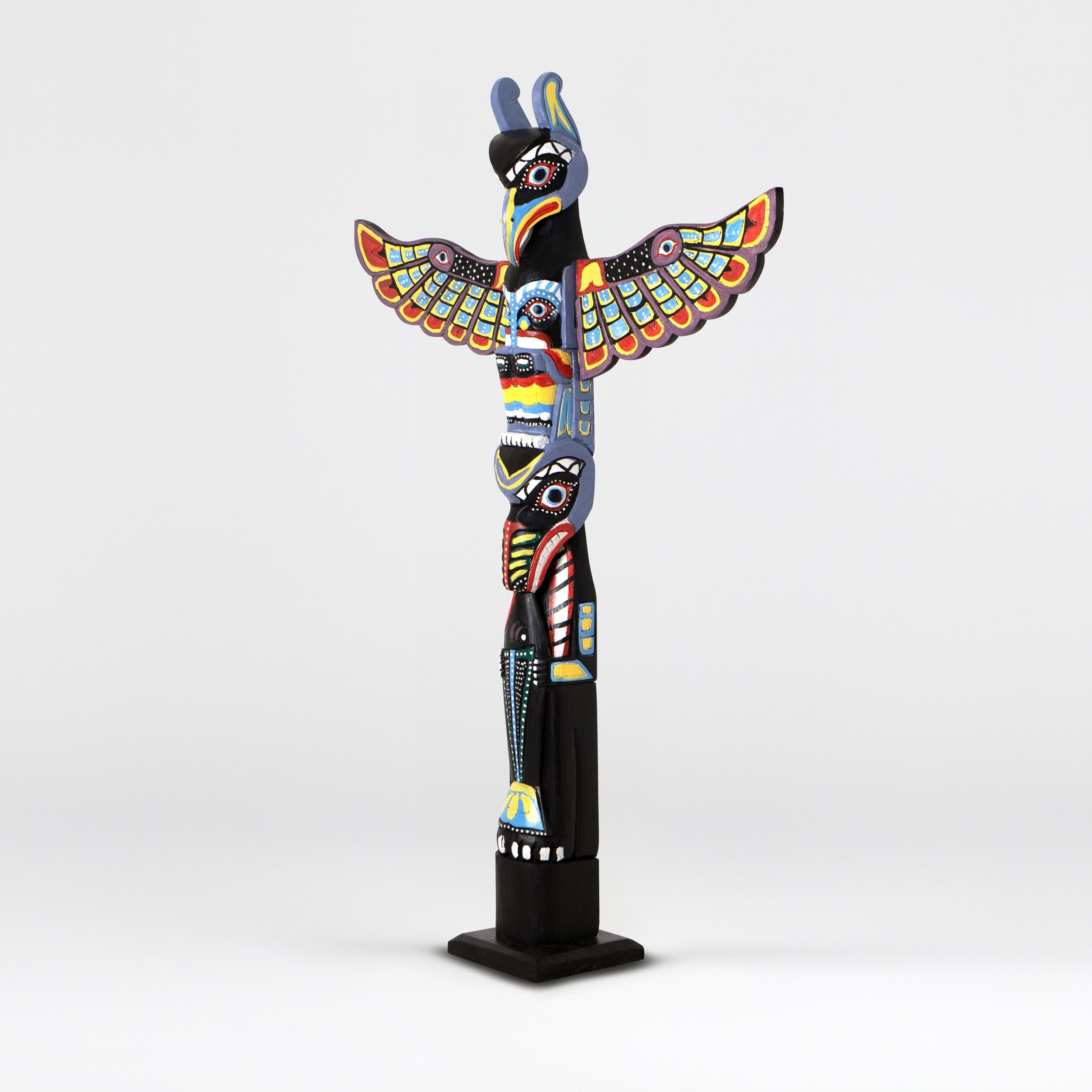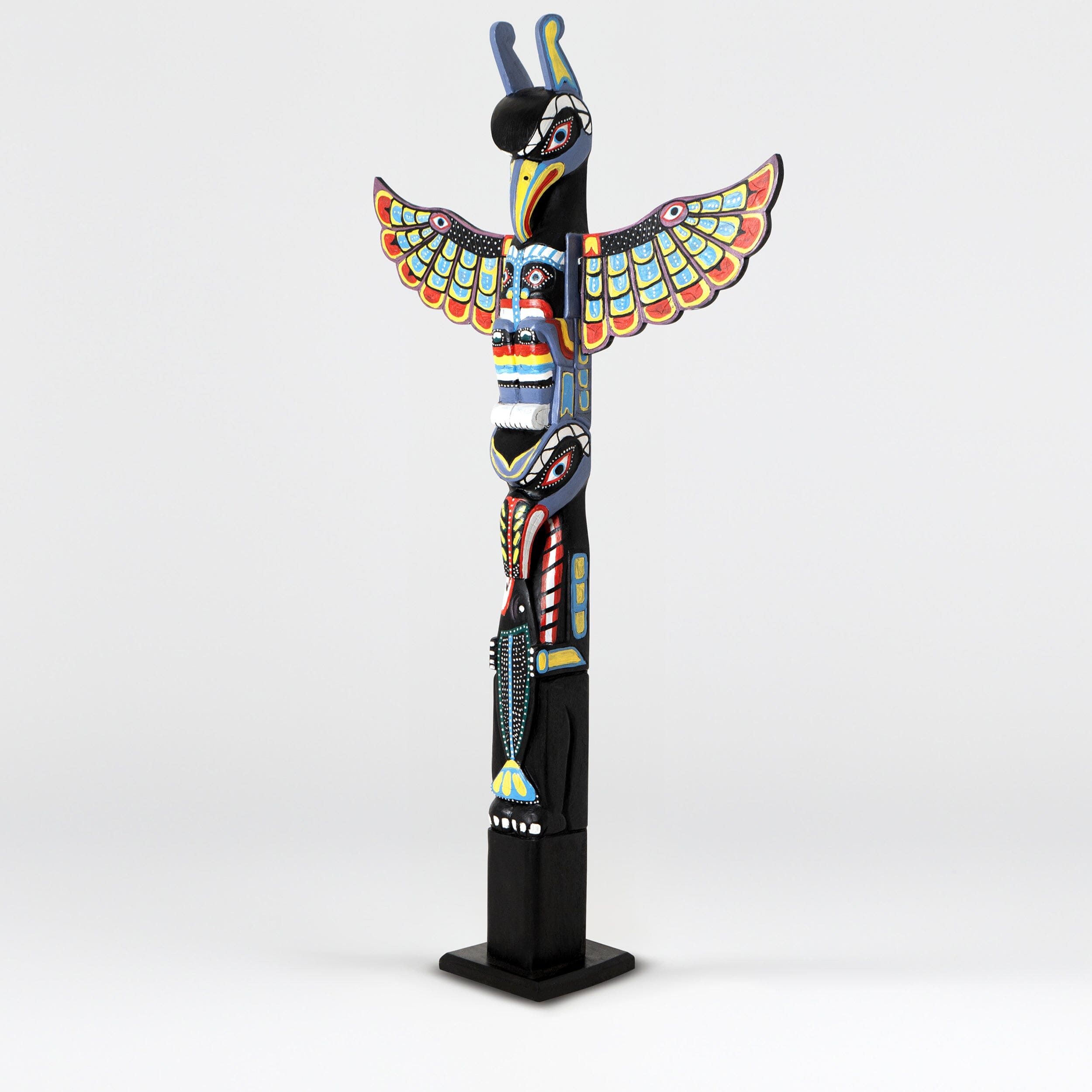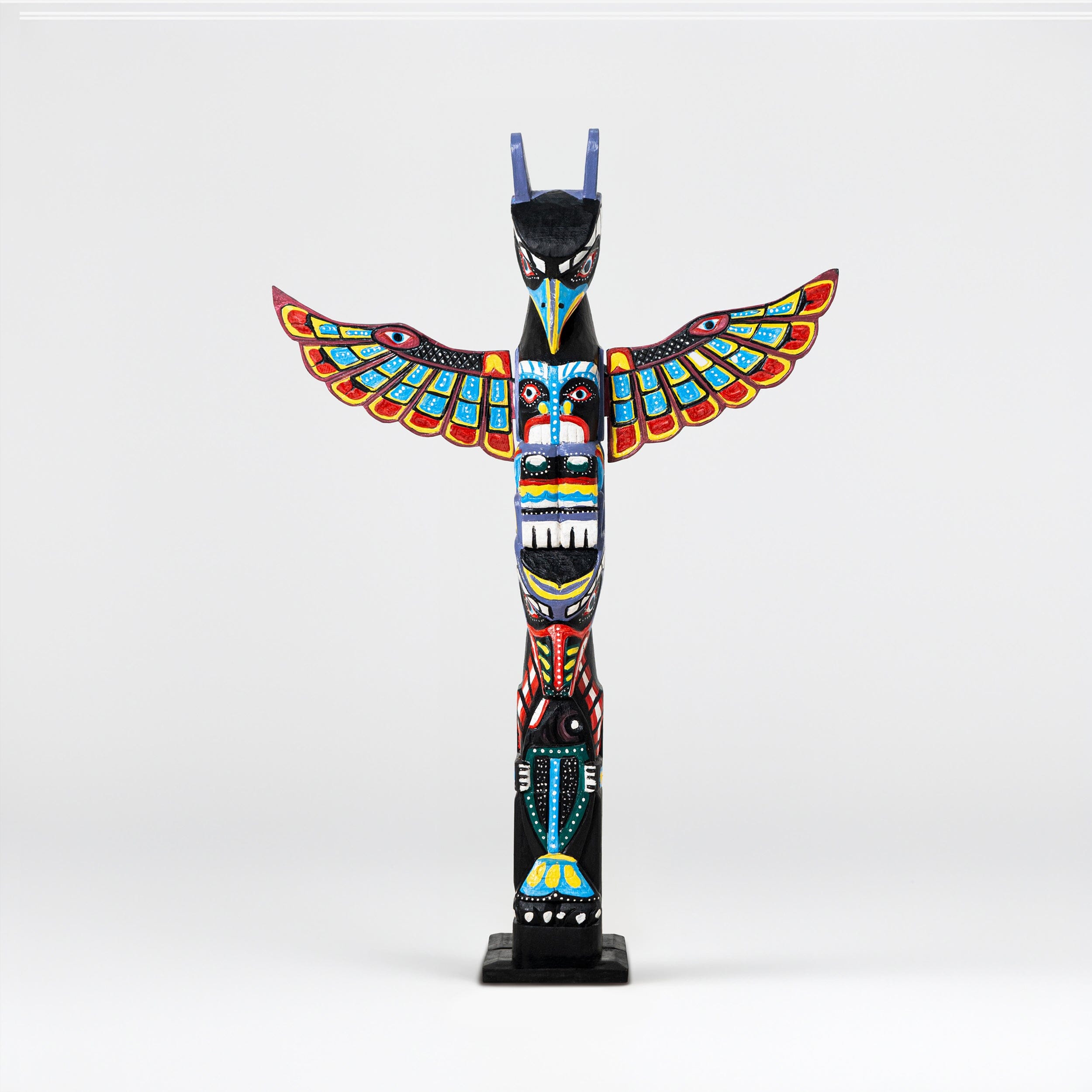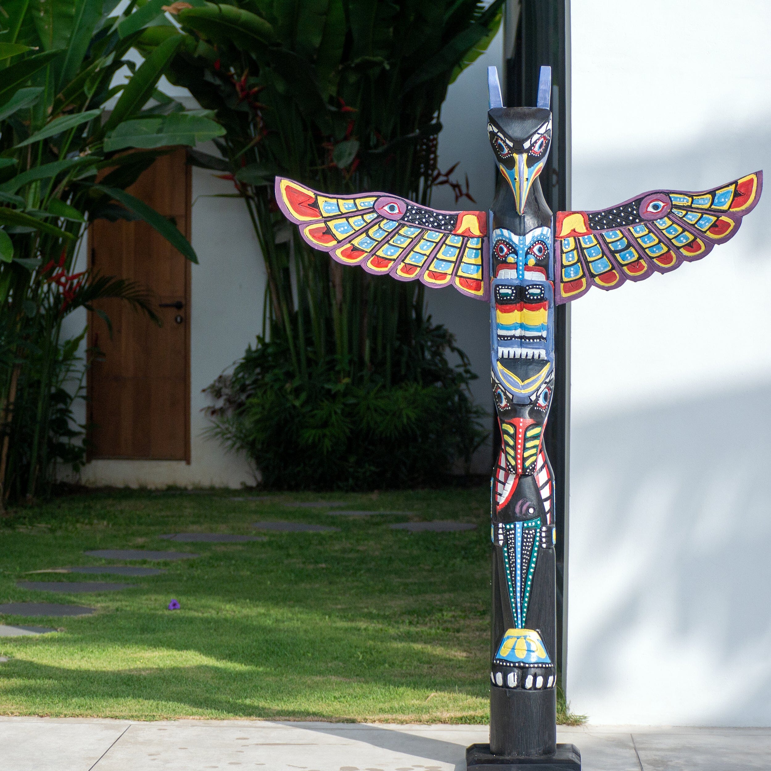 Our hand-carved Totem Pole, crafted with the utmost precision from high-quality wood, embodies rich storytelling. This unique piece features a majestic eagle for vision, an owl symbolizing wisdom, and a salmon representing life’s renewal, each detail meticulously carved by skilled artisans.
