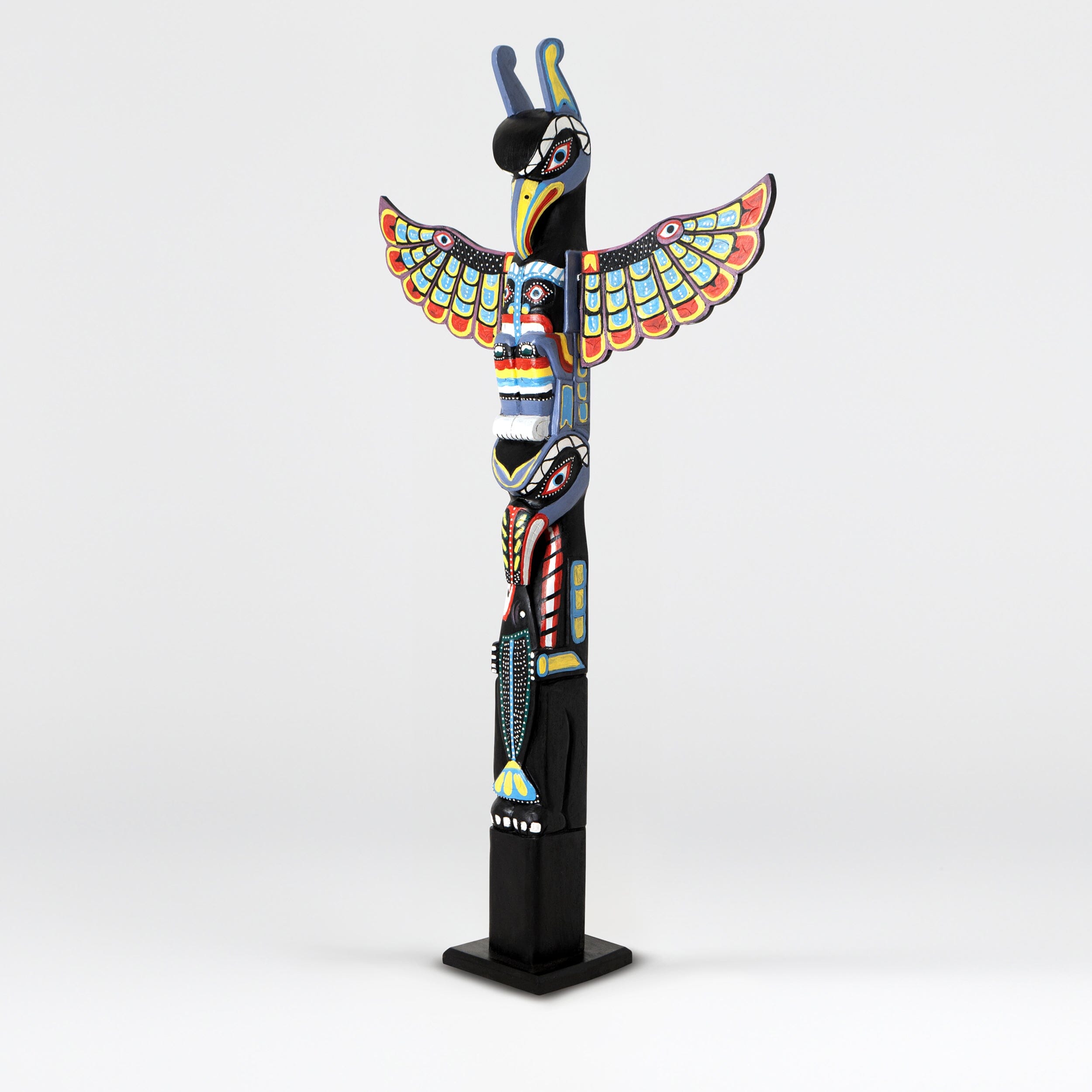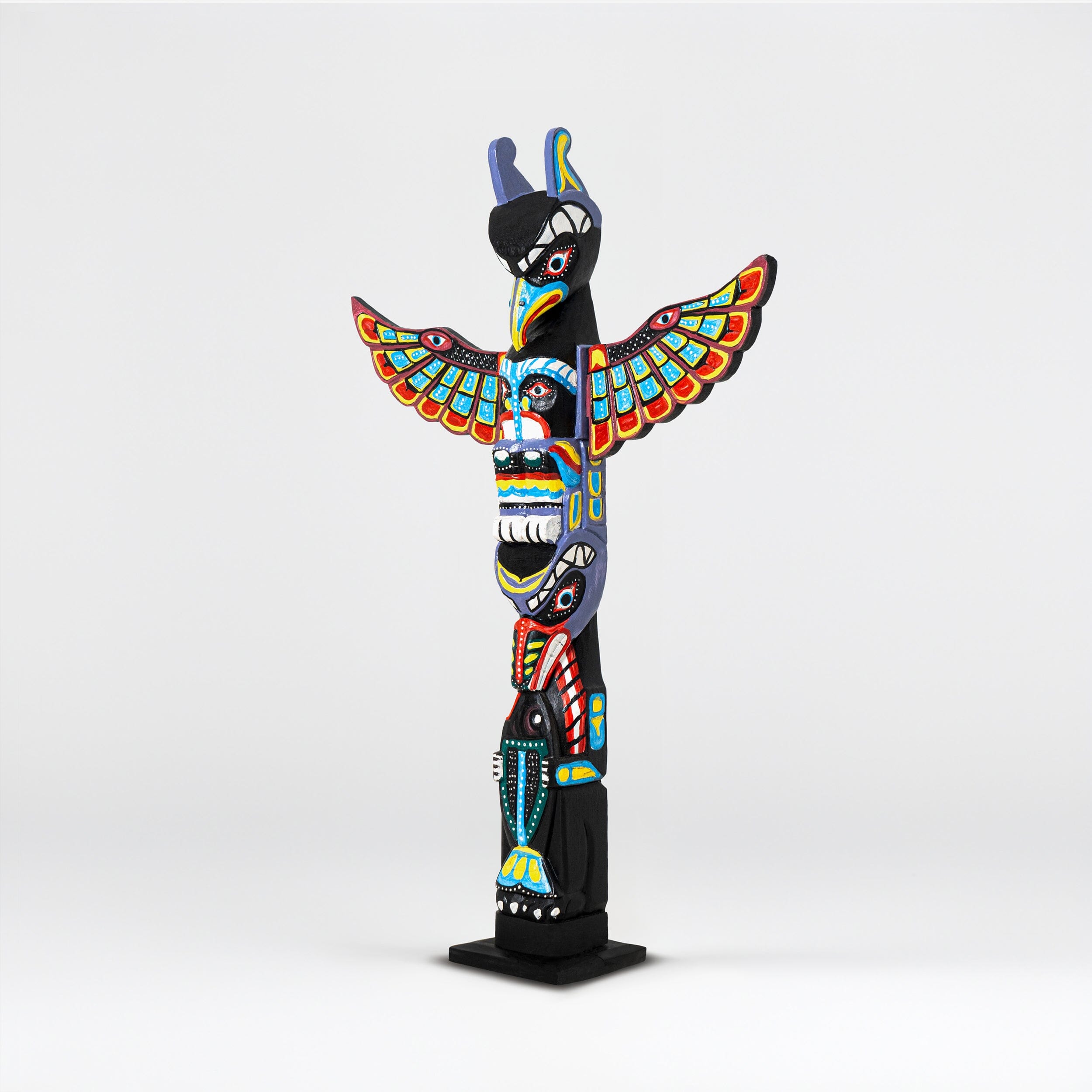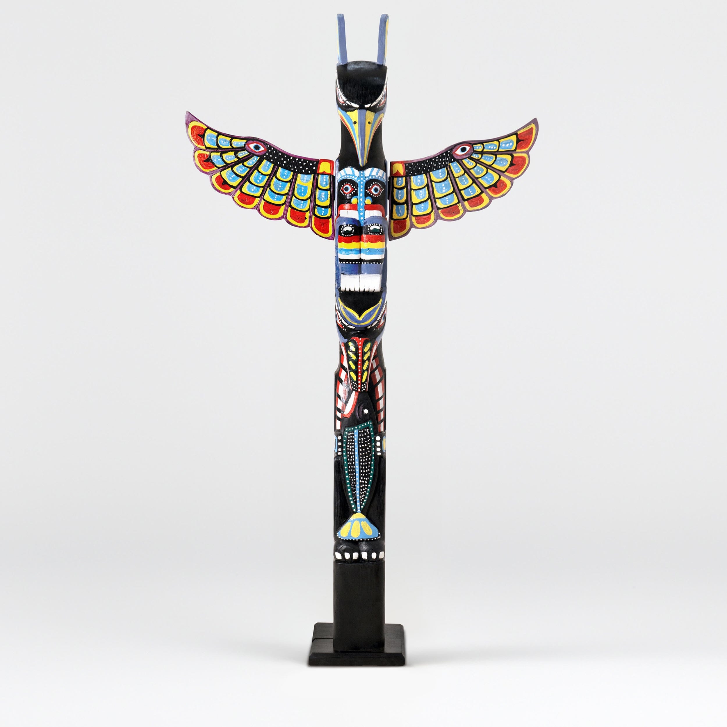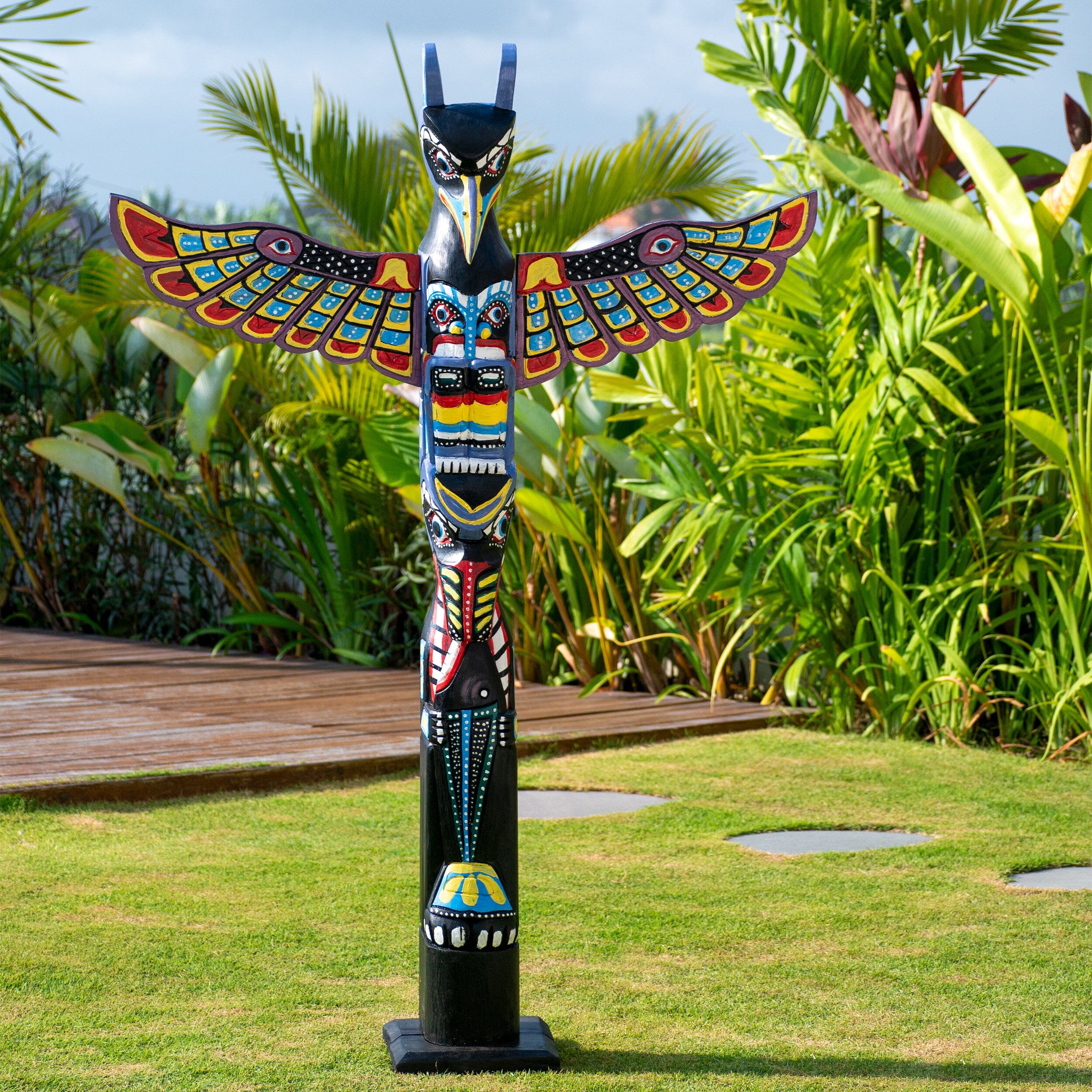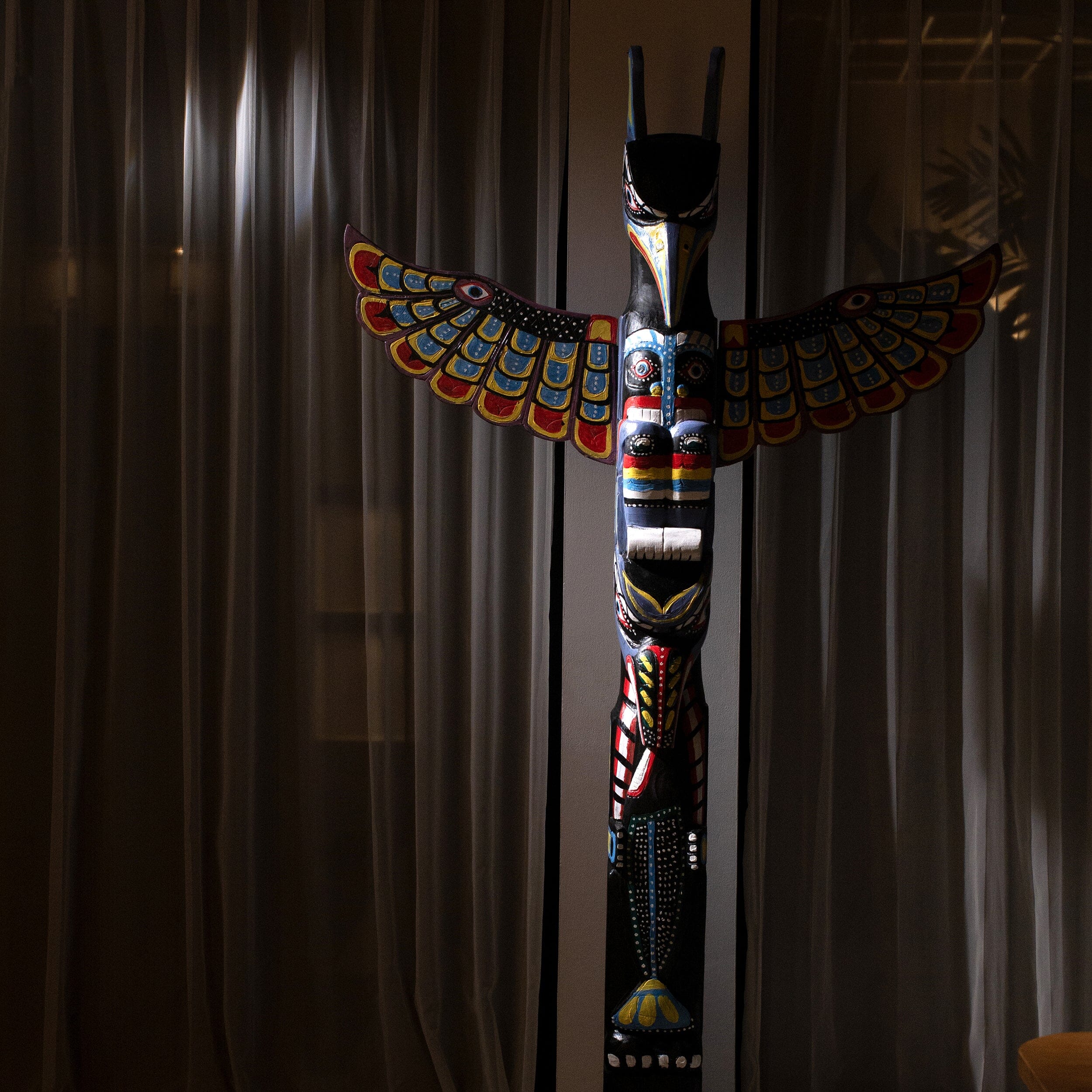 Our hand-carved Totem Pole, crafted with the utmost precision from high-quality wood, embodies rich storytelling. This unique piece features a majestic eagle for vision, an owl symbolizing wisdom, and a salmon representing life’s renewal, each detail meticulously carved by skilled artisans.