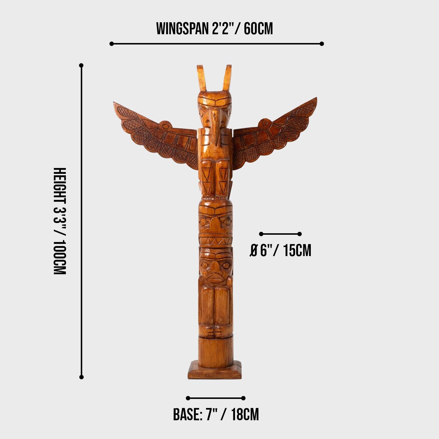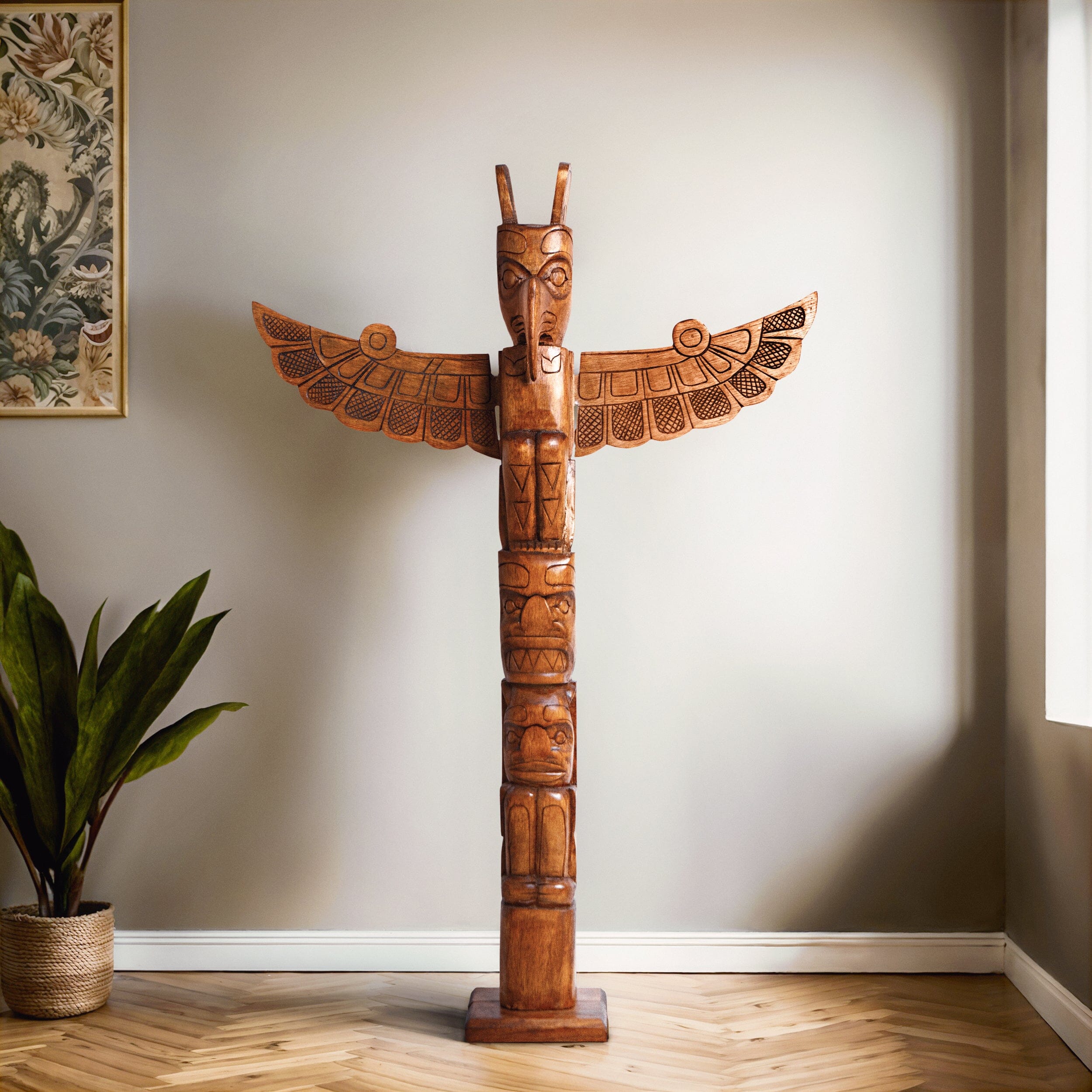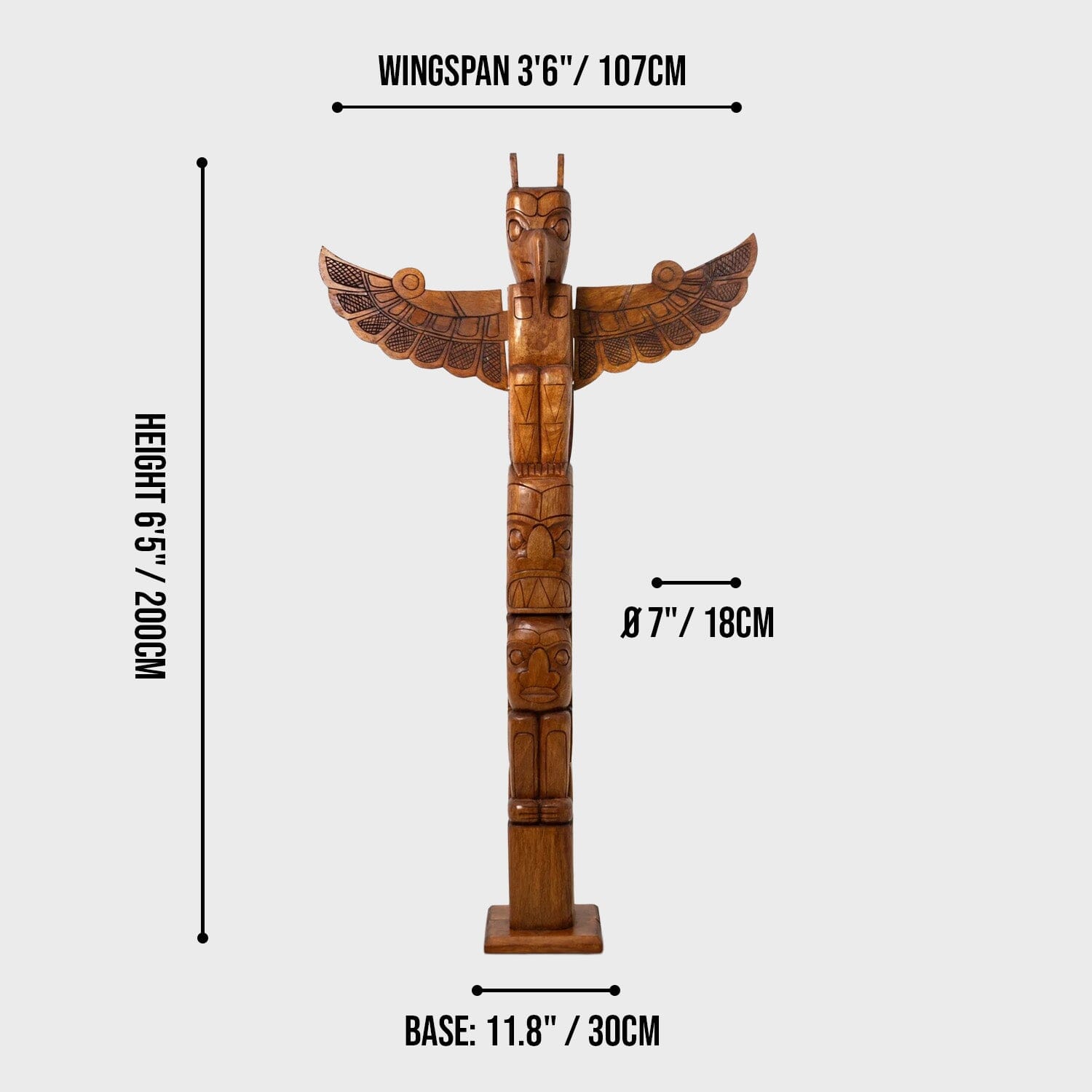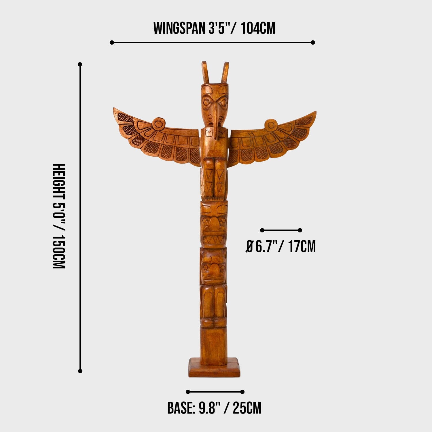 Our Totem Pole 'Orion' is carved with traditional symbols that carry unique meanings. The eagle brings foresight and vision, while the masks and faces honor the ancients – reminders of wisdom and heritage. Together, they create a meaningful piece of artistry that truly tells a story.
