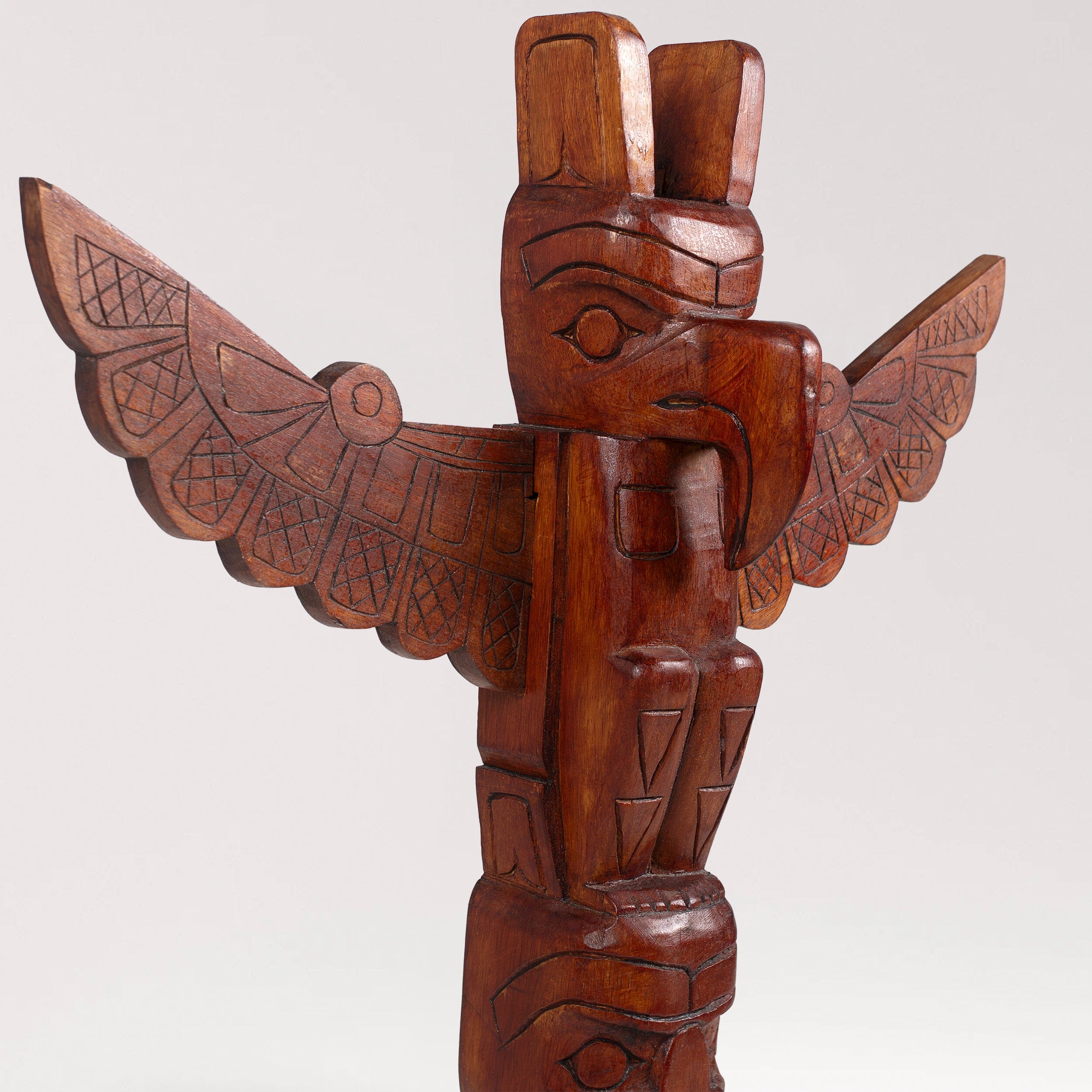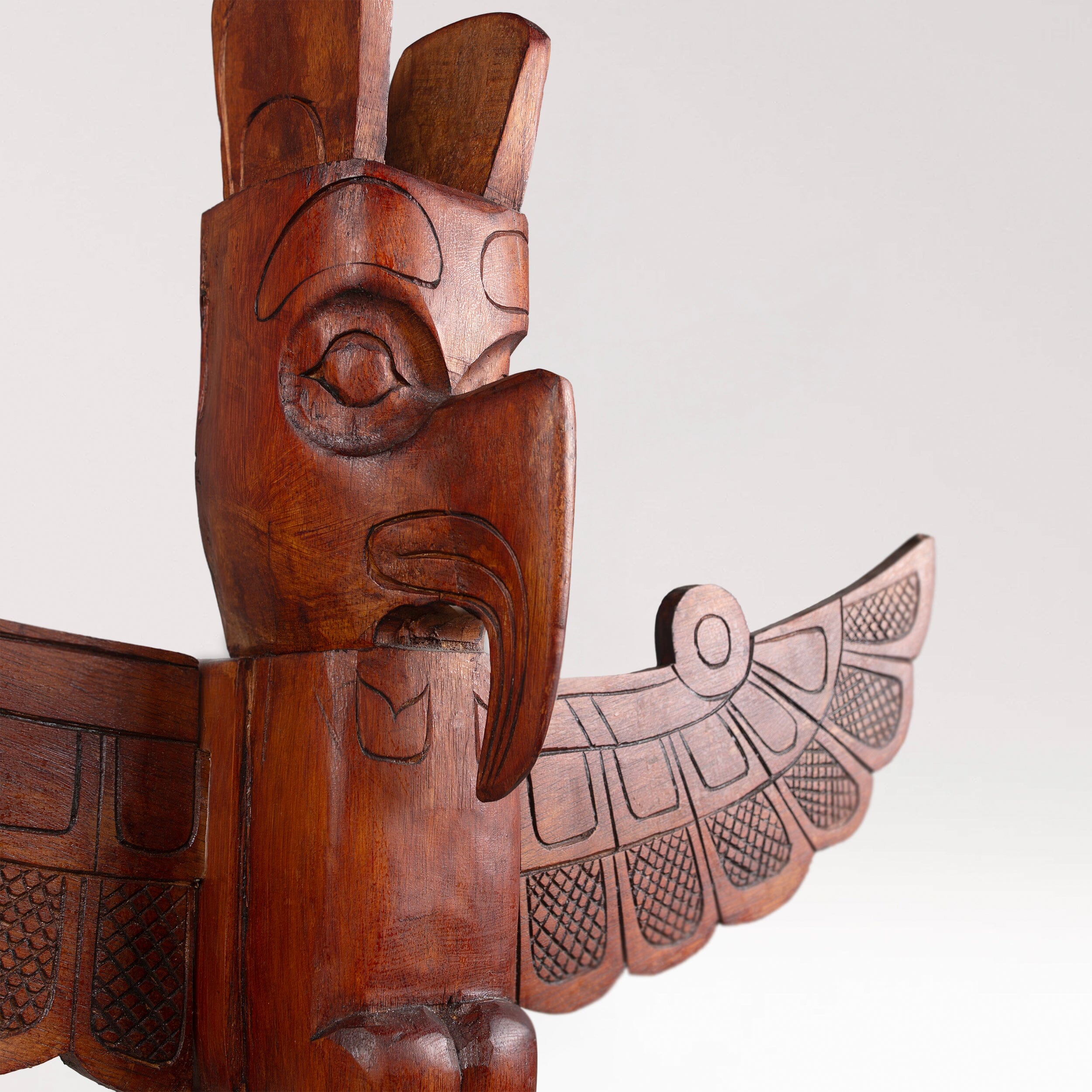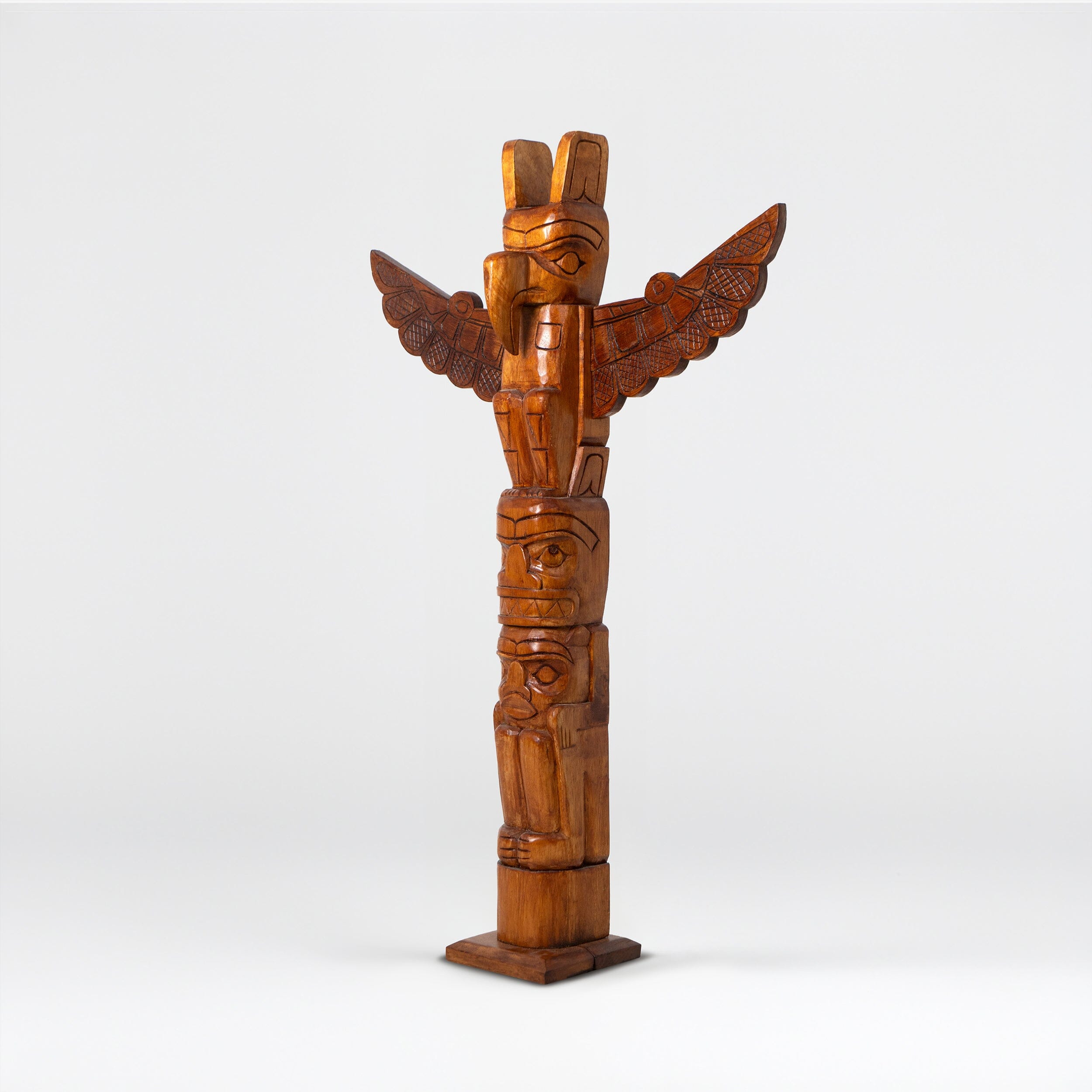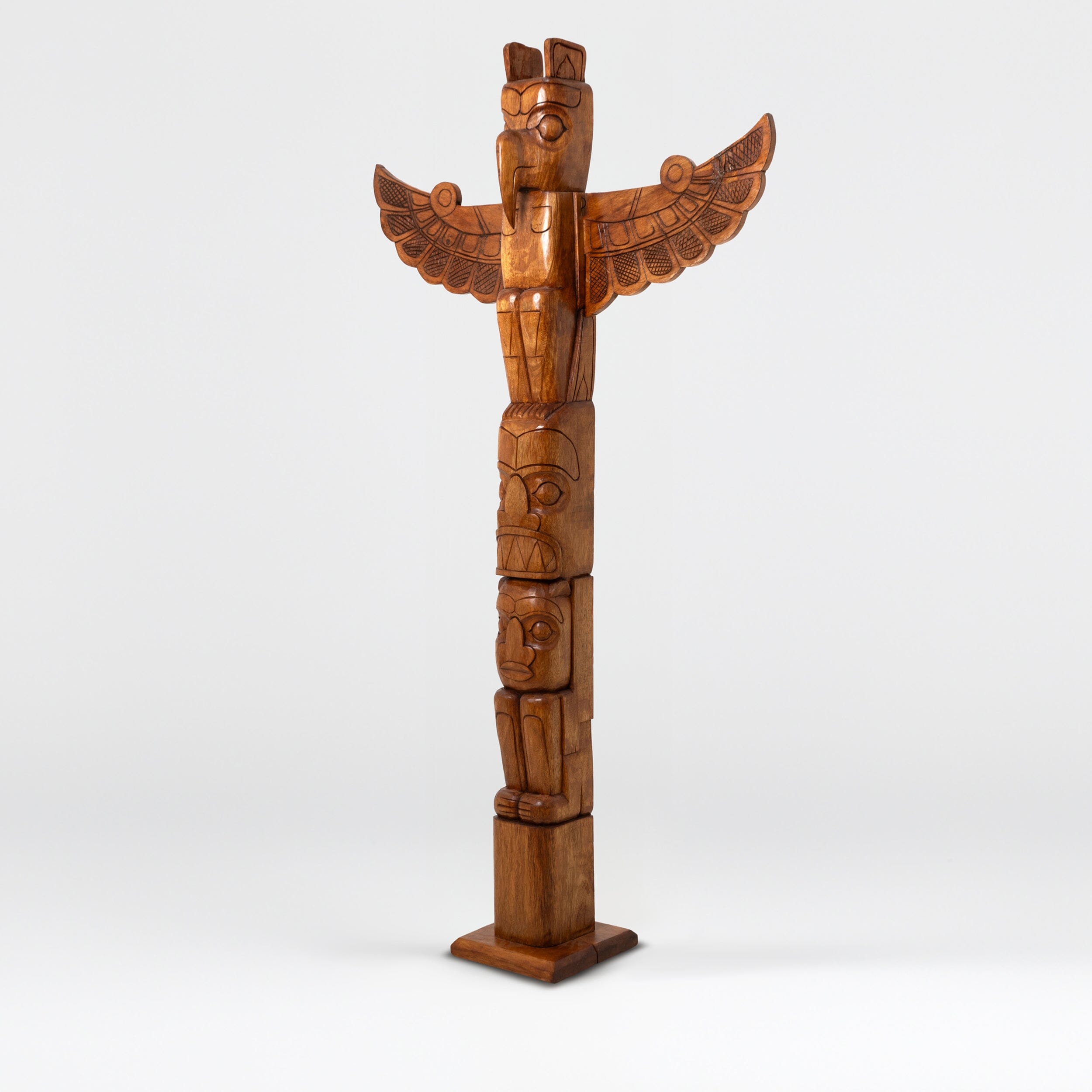 Our Totem Pole 'Orion' is carved with traditional symbols that carry unique meanings. The eagle brings foresight and vision, while the masks and faces honor the ancients – reminders of wisdom and heritage. Together, they create a meaningful piece of artistry that truly tells a story.