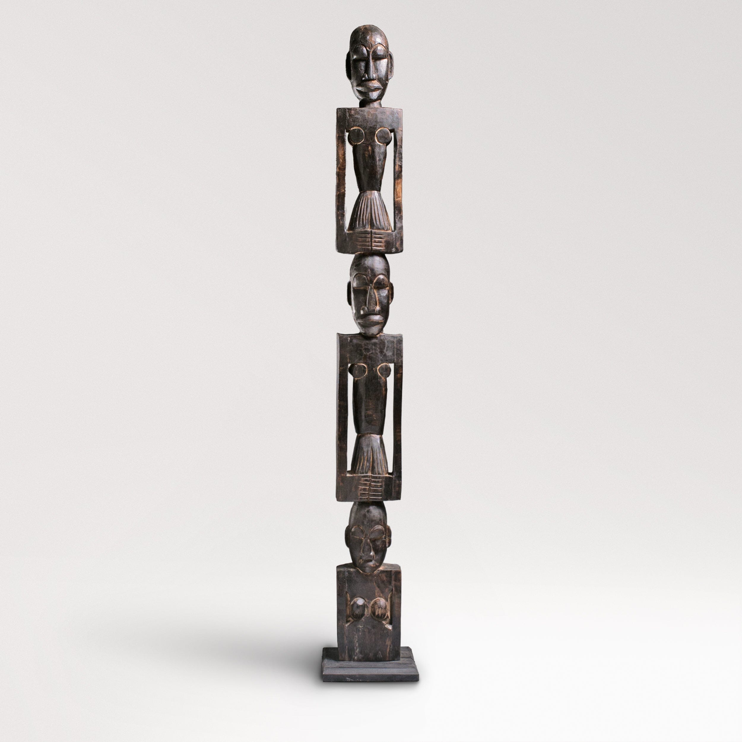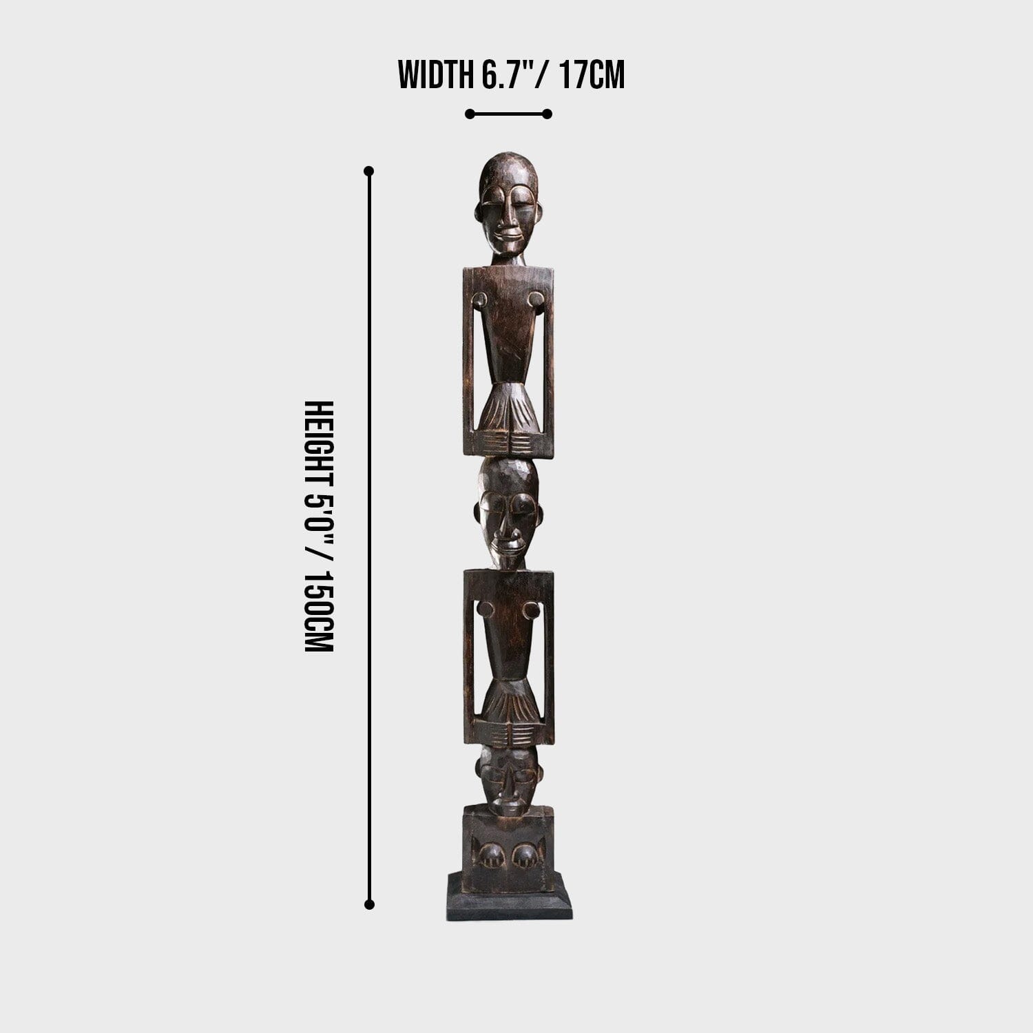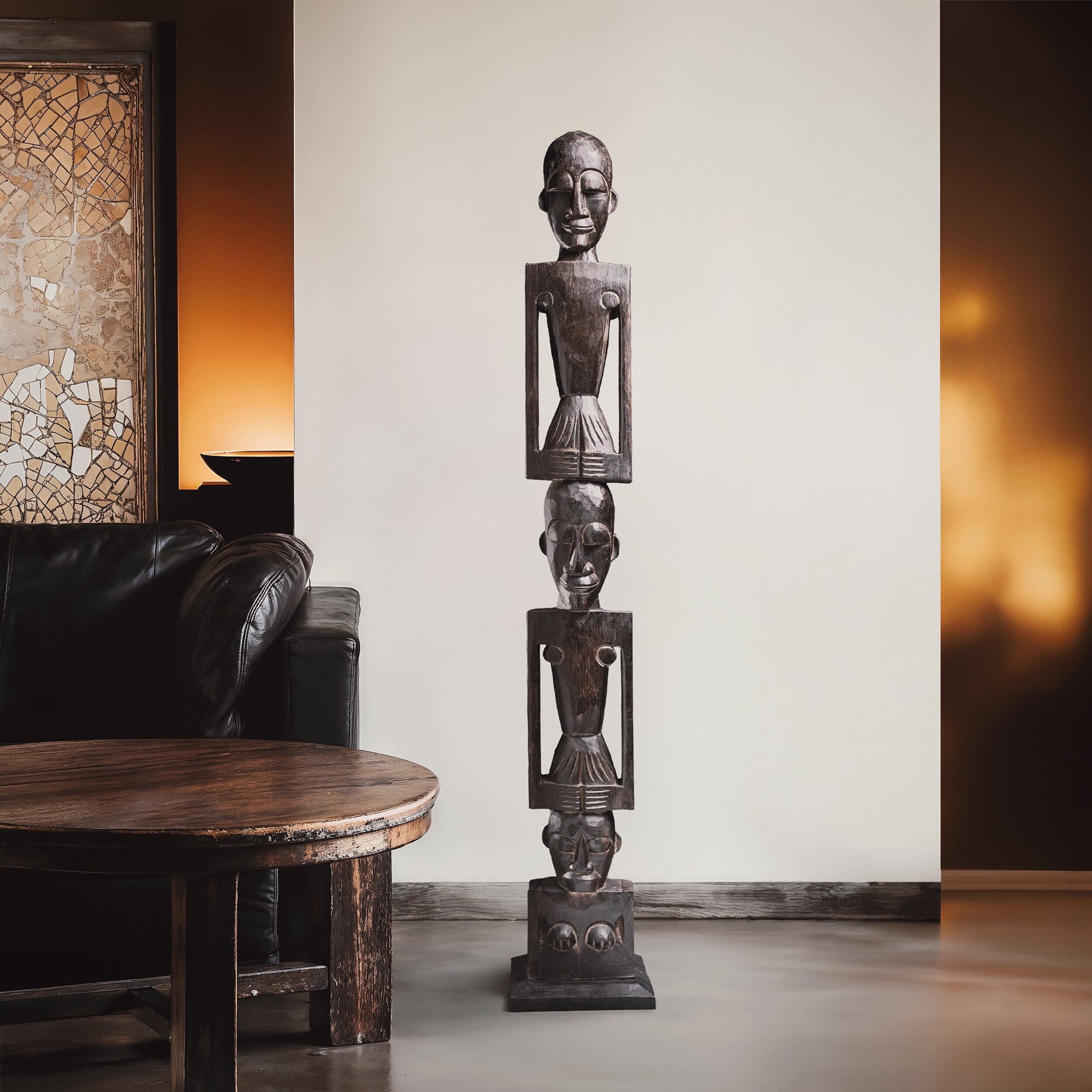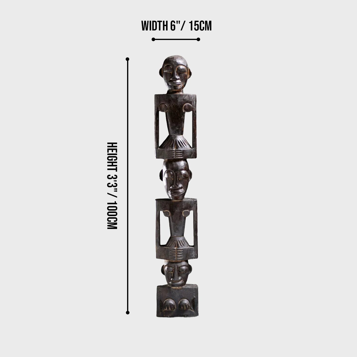 Introducing our hand-crafted African totem pole, a stunning piece of art for both indoor and outdoor use. This exquisite totem pole features three intricately carved figures, each symbolizing unity and strength. Made from durable wood, it showcases traditional African artistry with detailed facial expressions and unique body postures. Perfect for adding a touch of cultural heritage to your space, this totem pole is a testament to timeless craftsmanship and artistic expression.