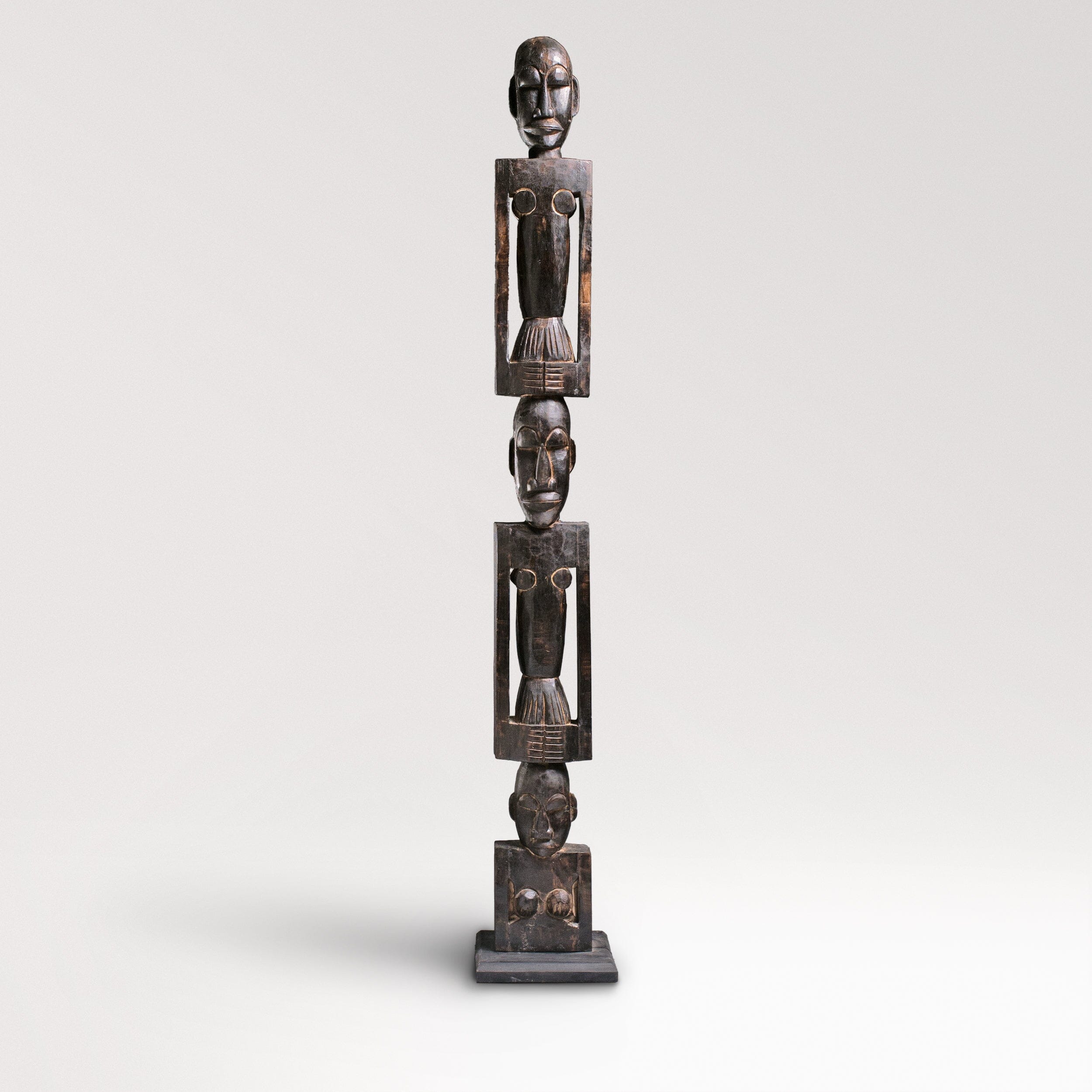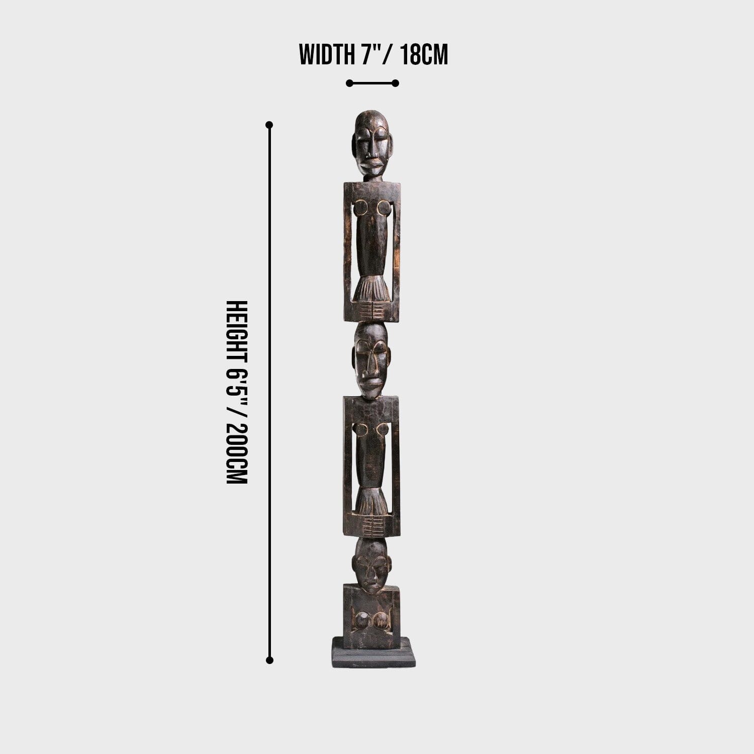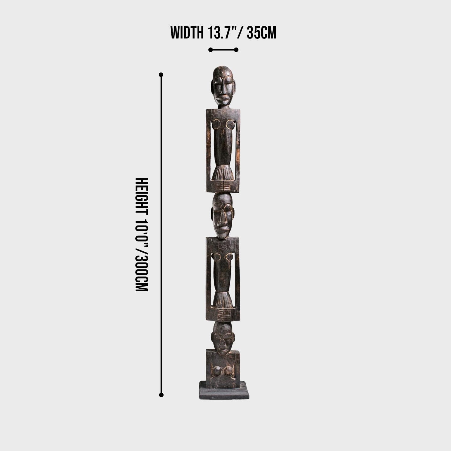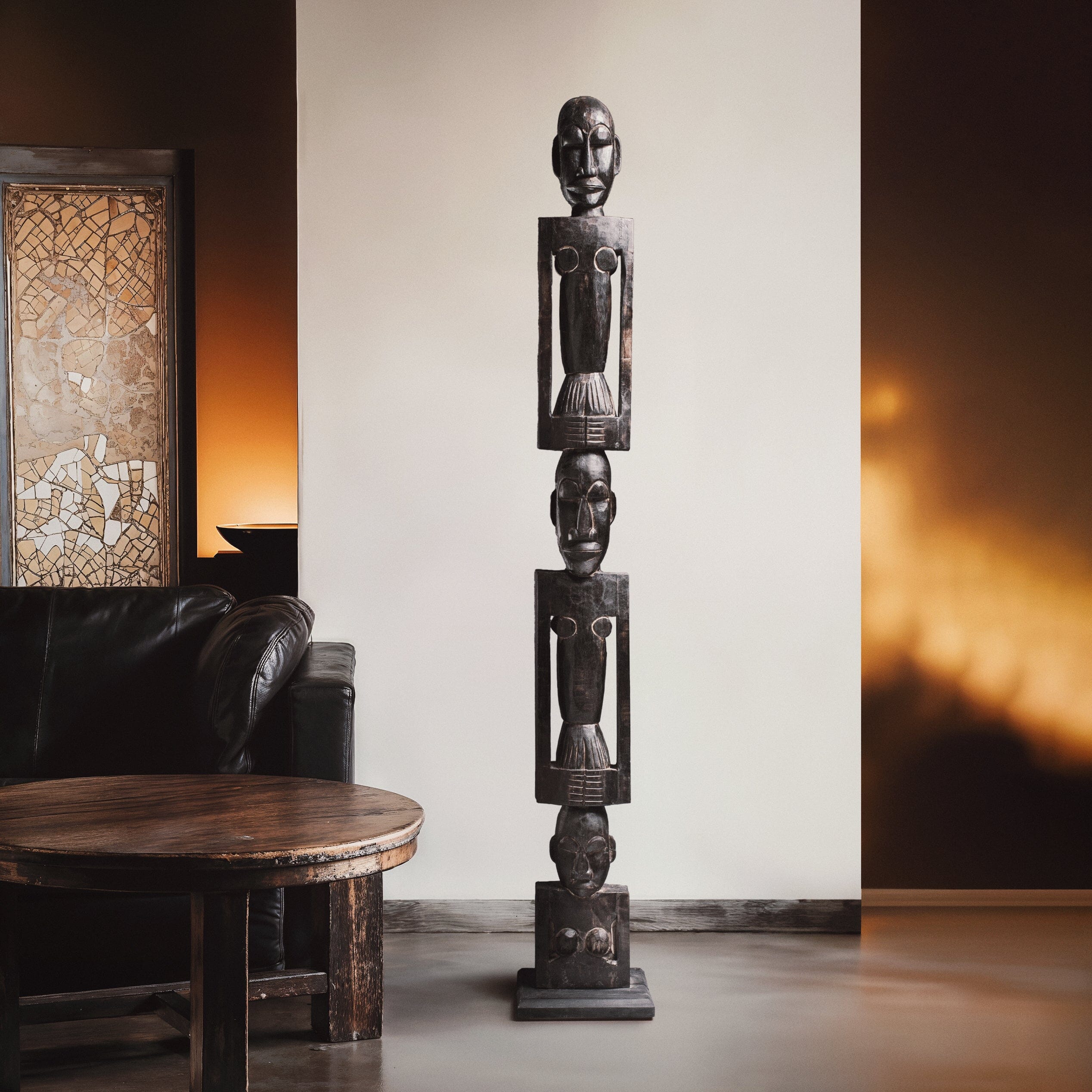 Introducing our hand-crafted African totem pole, a stunning piece of art for both indoor and outdoor use. This exquisite totem pole features three intricately carved figures, each symbolizing unity and strength. Made from durable wood, it showcases traditional African artistry with detailed facial expressions and unique body postures. Perfect for adding a touch of cultural heritage to your space, this totem pole is a testament to timeless craftsmanship and artistic expression.