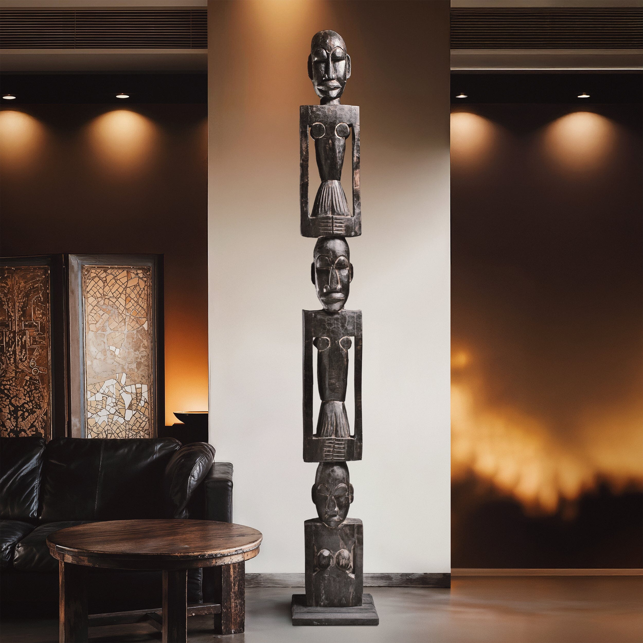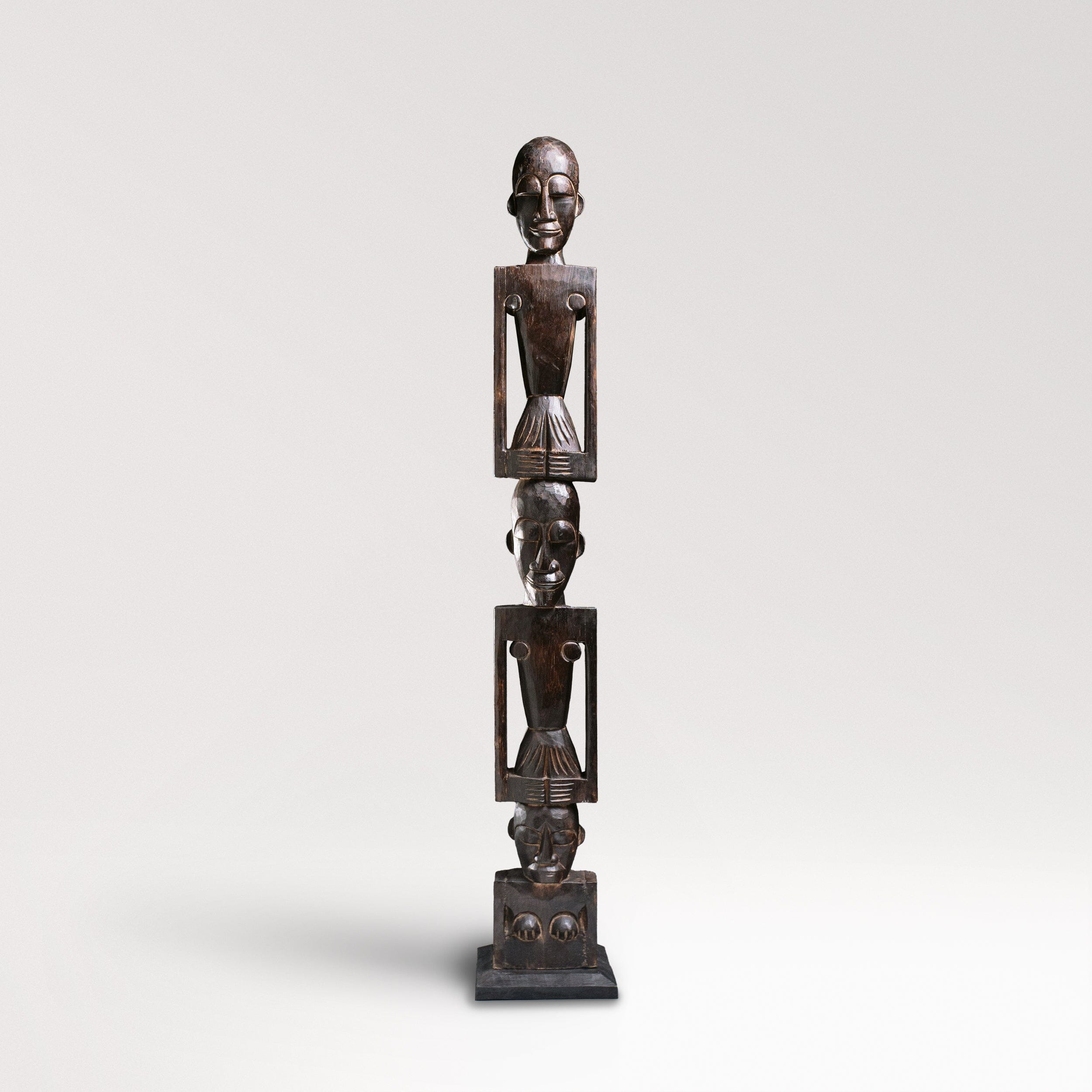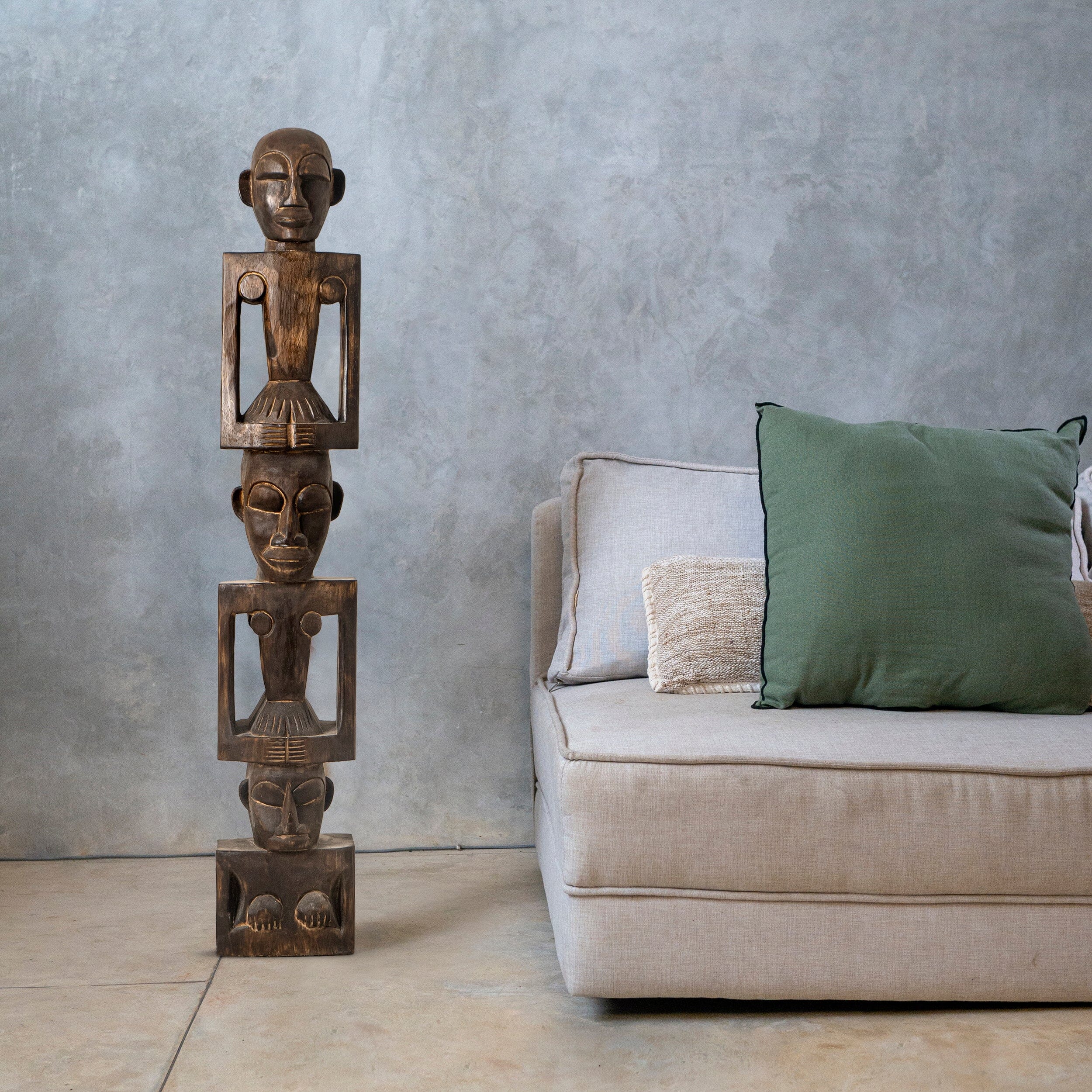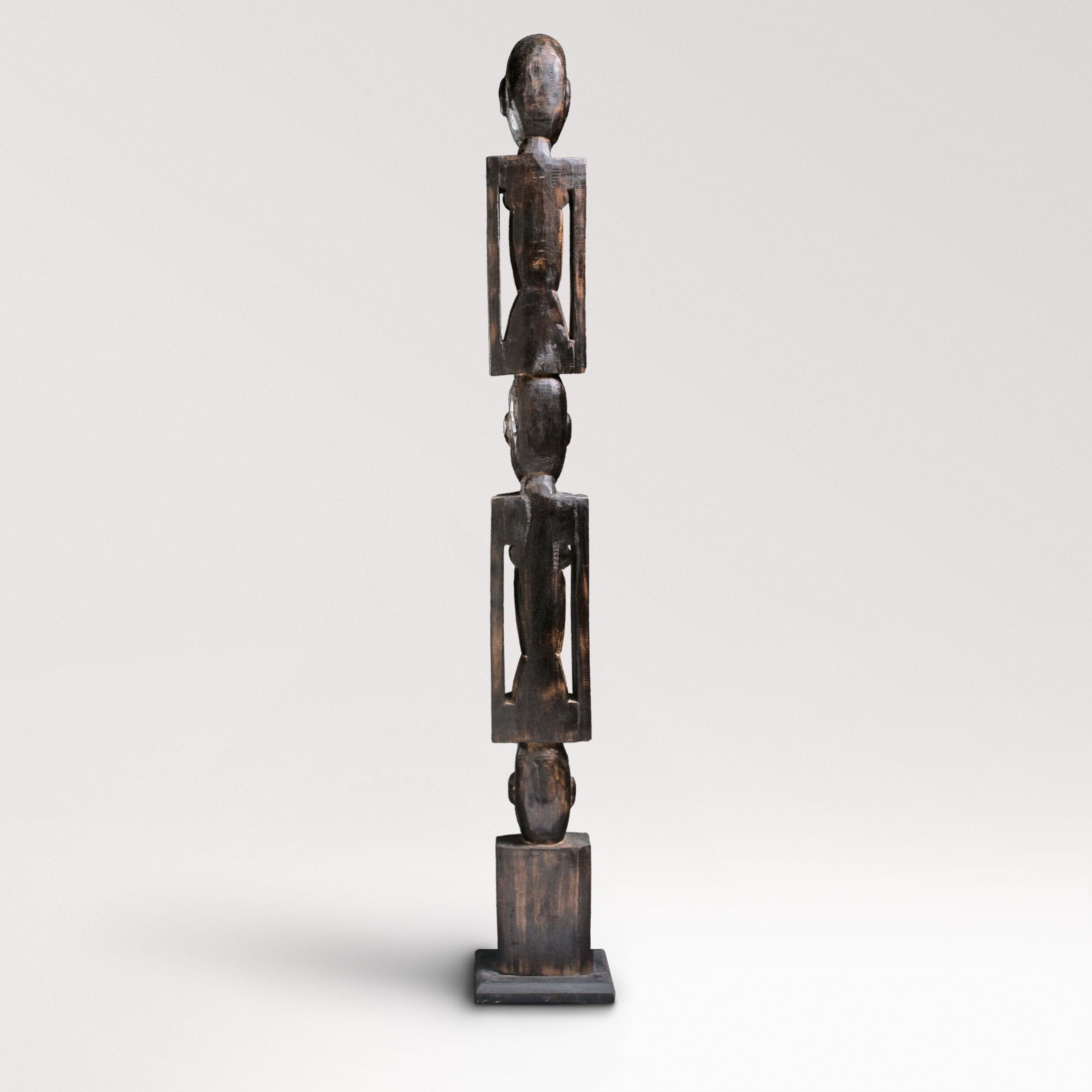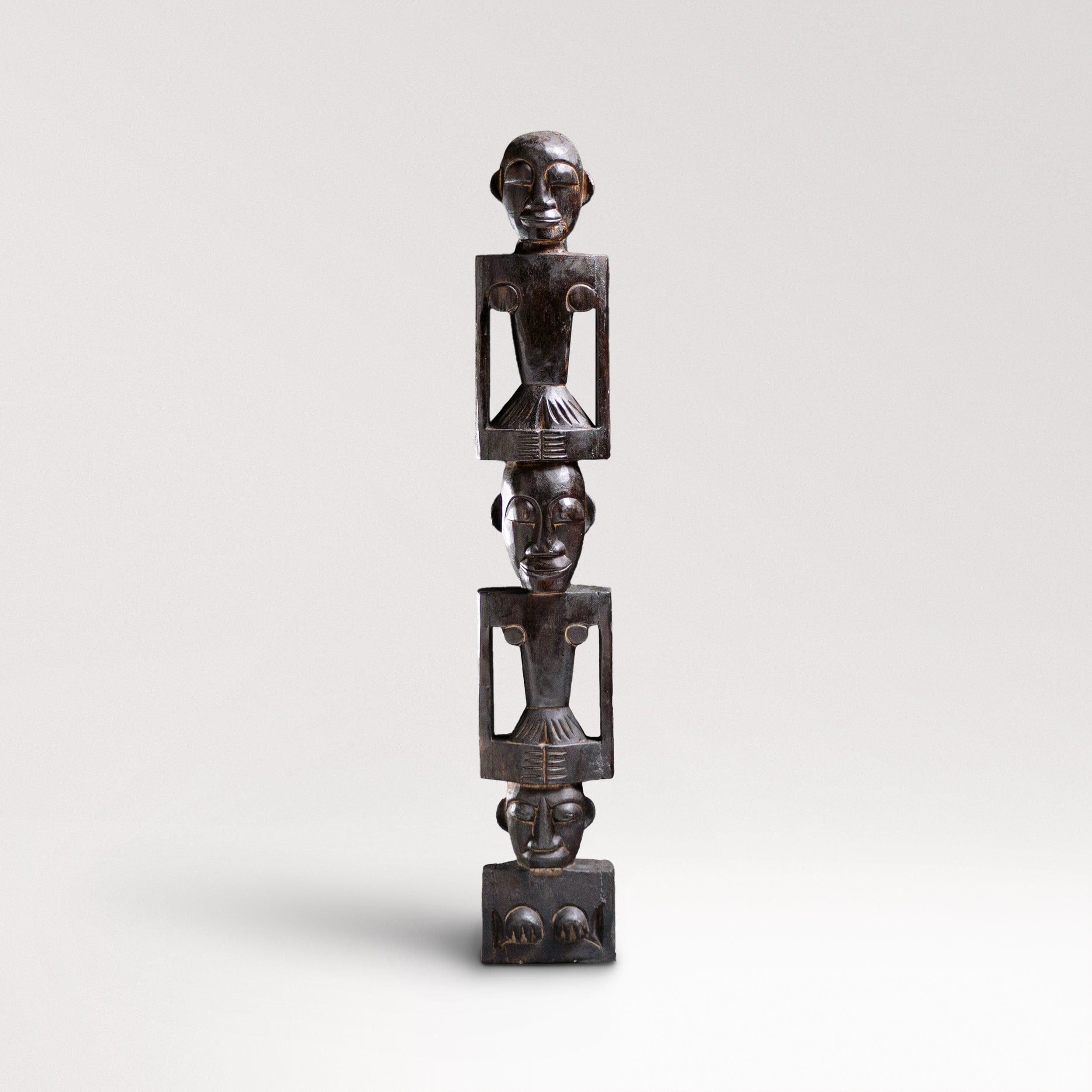 Introducing our hand-crafted African totem pole, a stunning piece of art for both indoor and outdoor use. This exquisite totem pole features three intricately carved figures, each symbolizing unity and strength. Made from durable wood, it showcases traditional African artistry with detailed facial expressions and unique body postures. Perfect for adding a touch of cultural heritage to your space, this totem pole is a testament to timeless craftsmanship and artistic expression.