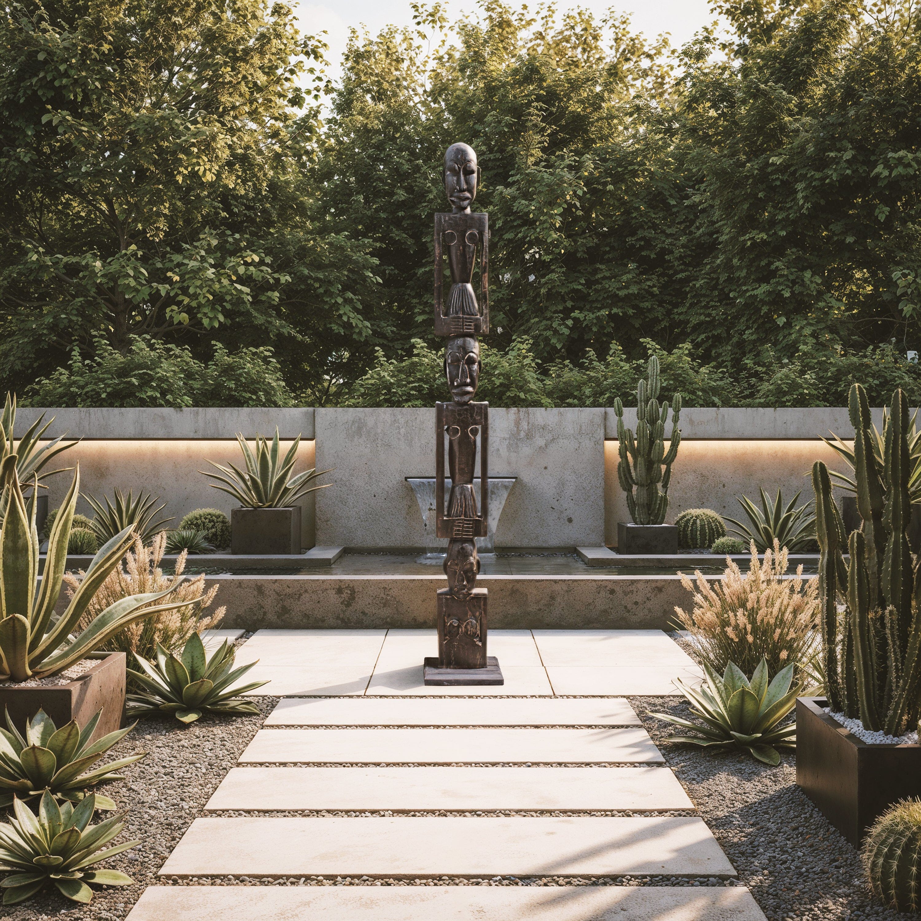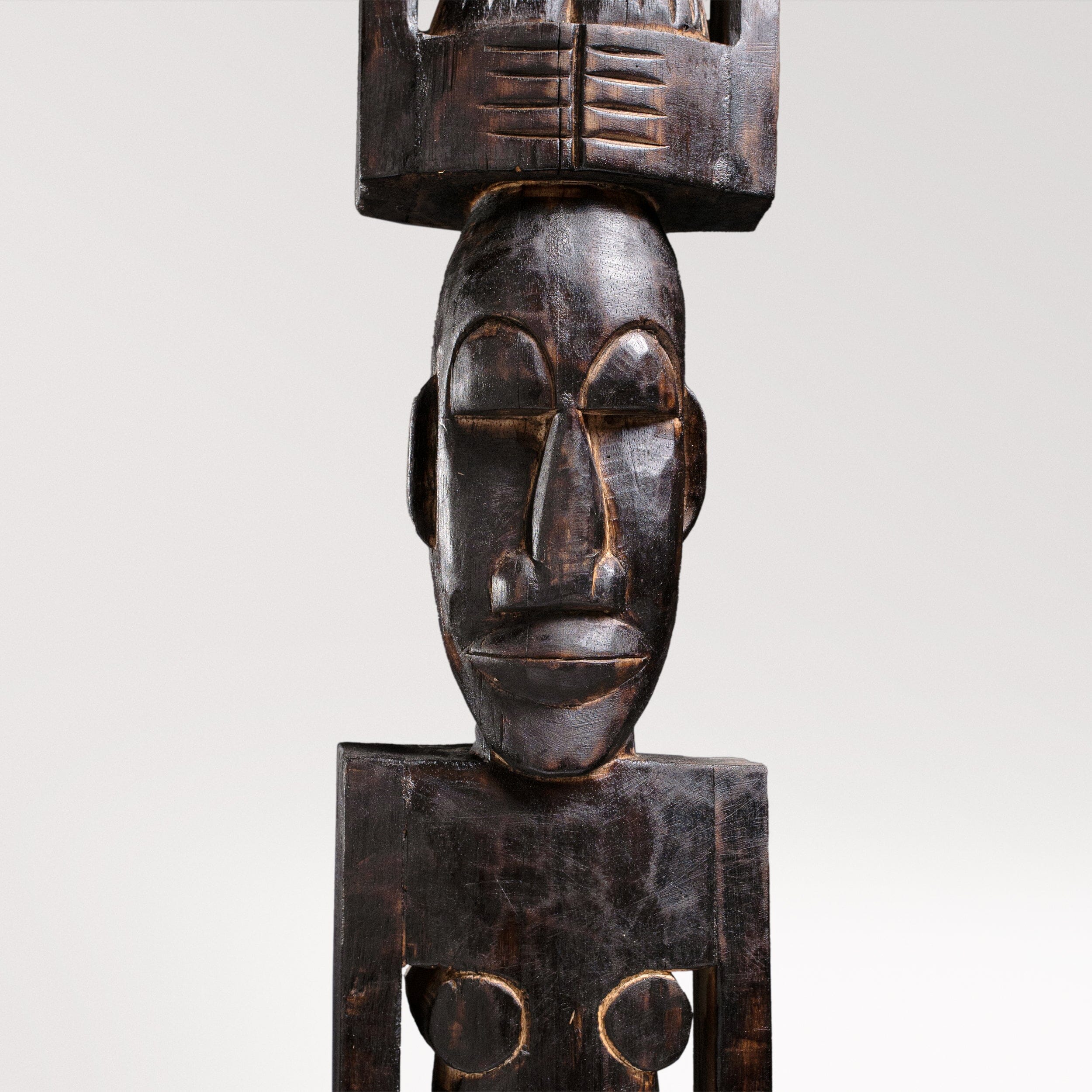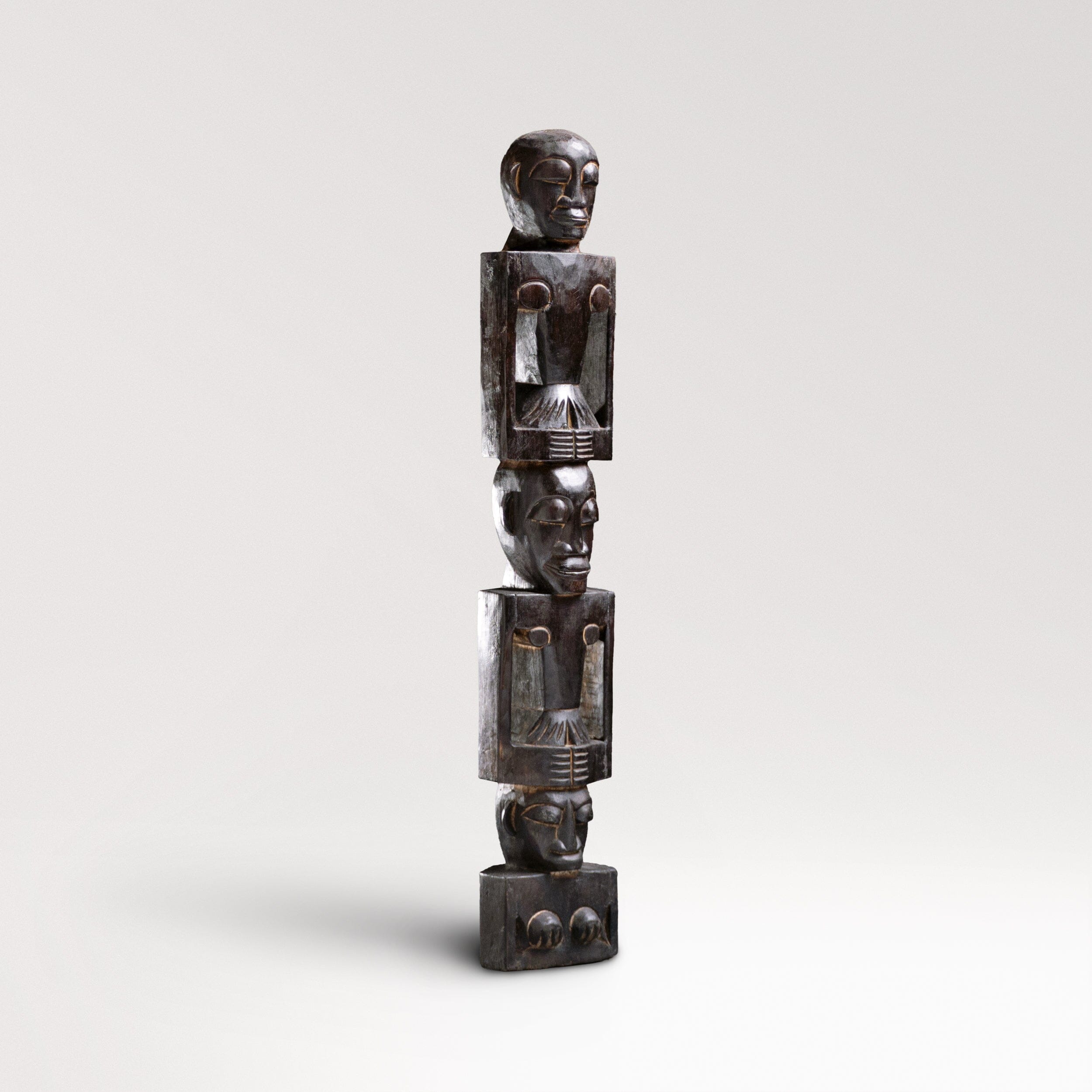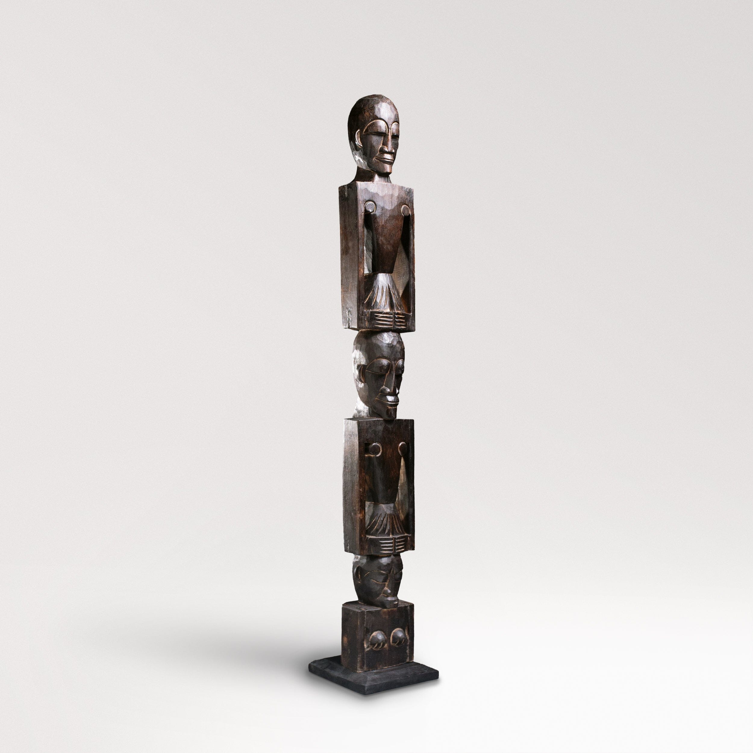 Introducing our hand-crafted African totem pole, a stunning piece of art for both indoor and outdoor use. This exquisite totem pole features three intricately carved figures, each symbolizing unity and strength. Made from durable wood, it showcases traditional African artistry with detailed facial expressions and unique body postures. Perfect for adding a touch of cultural heritage to your space, this totem pole is a testament to timeless craftsmanship and artistic expression.