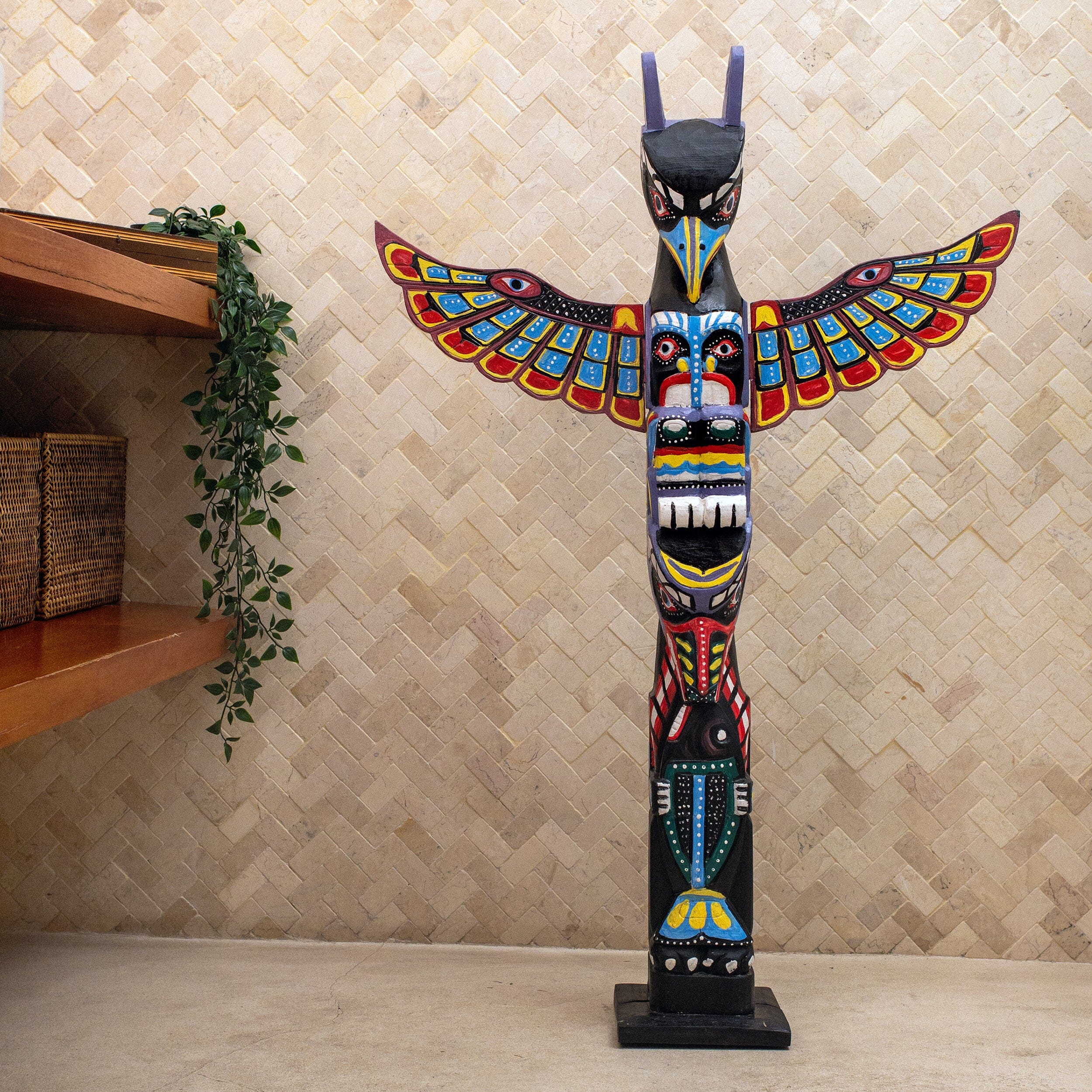 Our hand-carved Totem Pole, crafted with the utmost precision from high-quality wood, embodies rich storytelling. This unique piece features a majestic eagle for vision, an owl symbolizing wisdom, and a salmon representing life’s renewal, each detail meticulously carved by skilled artisans.